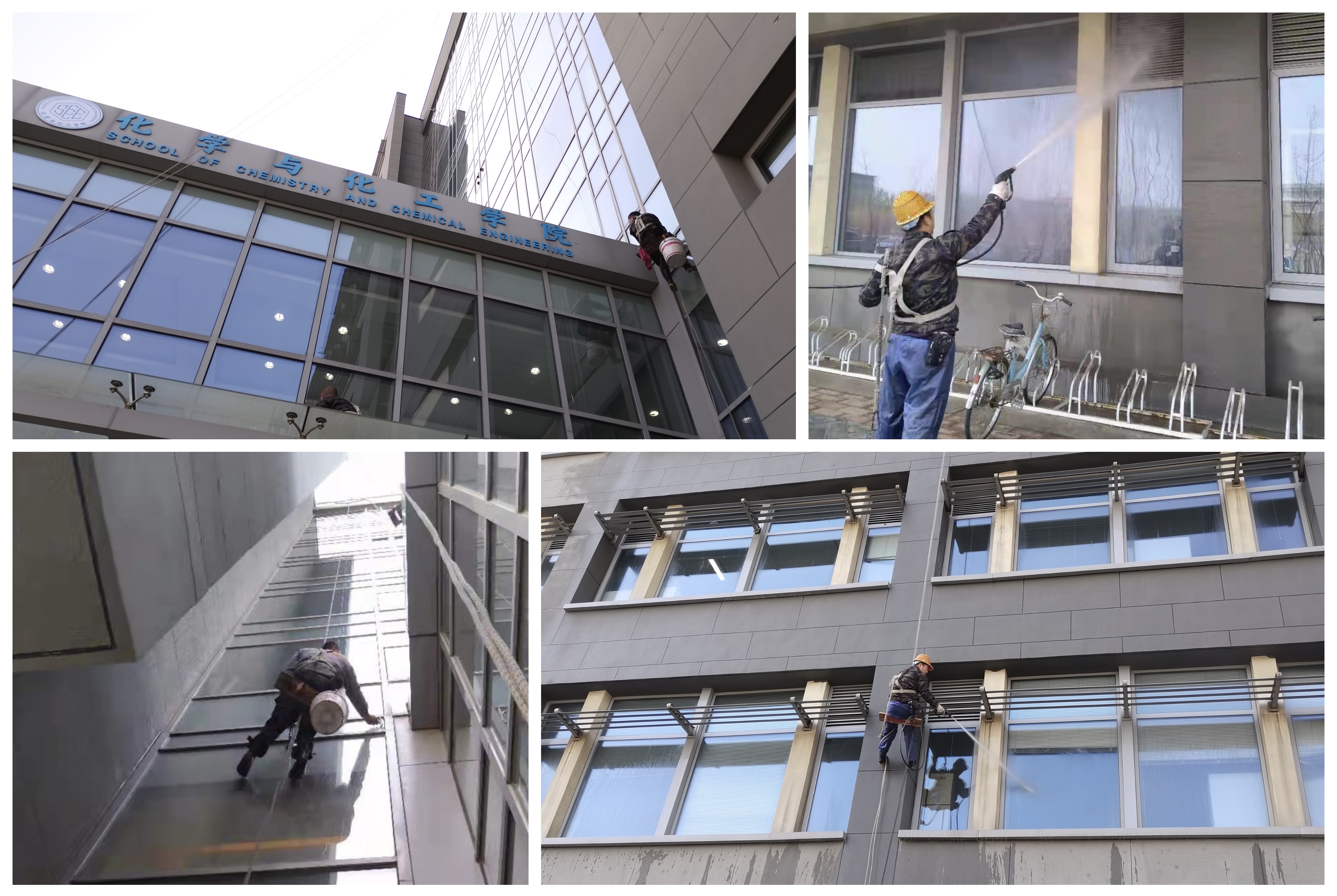 亚洲无码 所在的工业生态楼的窗户为半封闭的,各房间室外玻璃难以清洗,已积累较多灰尘和污垢。在第九届教职工代表大会广泛征集教师意见的过程中,亚洲无码 了解到教职工希望亚洲无码 统筹清洗外墙玻璃的心声后,秉承着为师生办实事、解难题的原则,将生态楼外墙清理工作提上了日程。