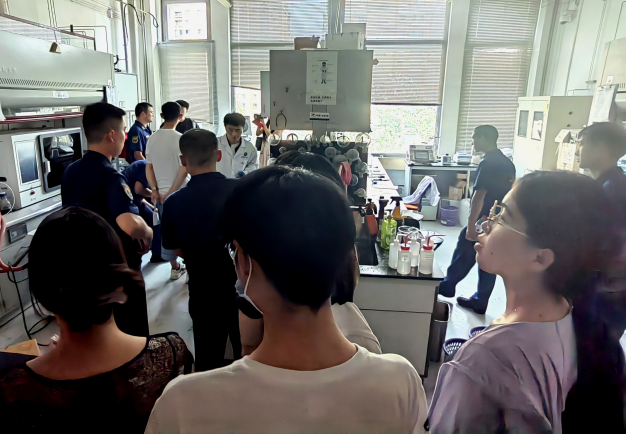 各位消防员同志走进实验室,仔细询问和排查实验室的各项安全情况,曹岩磊指导员首先就消防安全的基本知识做了简要讲解,他强调火灾猛烈阶段,迅速蔓延的火石、巨大的燃烧面积和极高的温度,将会使火势达到难以控制的程度,因此一旦发现火情,就要及时采取措施并且迅速报警。曹岩磊同志多次强调,面对火灾我们应当树立正确的意识,以生命安全为第一位,不要因小失大,为了钱财等身外之物而错失逃离火灾现场的最佳时机。纪检委员刘雨昕向消防站同志介绍自己实验室的工作并让消防站的同志们体验红外仪,消防同志仅需将手指放在仪器上,电脑屏幕便会显示元素组成。于北溟书记带领消防站的同志们参观了工业生态楼的党员之家,向消防员同志们介绍了化学与化工亚洲无码 特色的党建活动以及各种实验室安全检查活动。