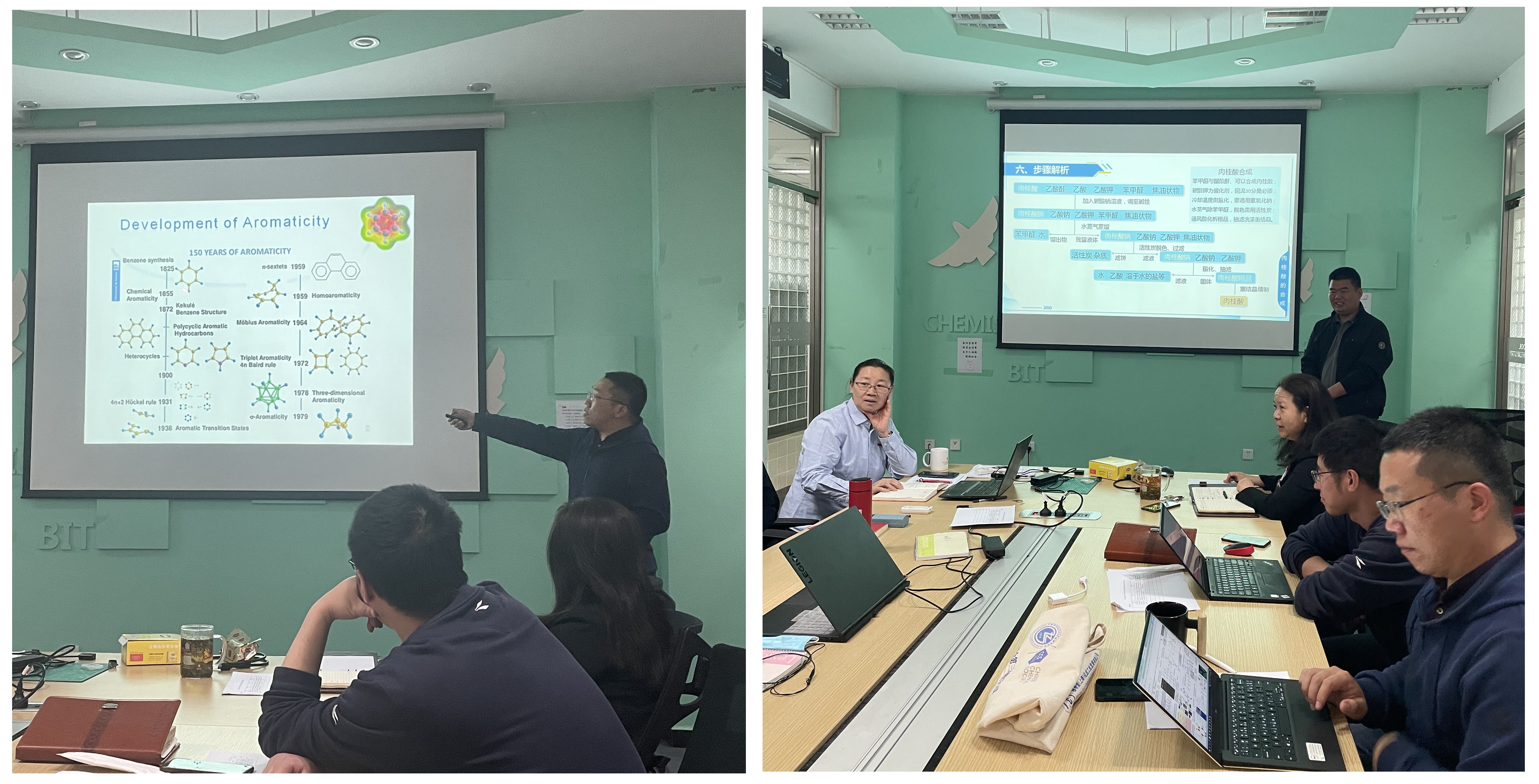 支部大会理论学习与讨论结束后,下午13:10开始,进行青年教师基本功比赛所内选拔赛,有幸邀请到北京市高等亚洲无码 教学名师奖获得者—李晖老师作为评审专家组的组长。尹晓东选择专业基础课《有机化学》中的“Aromatic Hydrocarbons and Aromaticity”一节,用全英文讲解了芳香化合物的芳香性,内容从基础到前沿广博详实,英文讲解清晰流利;金旭辉讲授《有机化学》中“芳香性杂环化合物”一节,教学内容丰富,讲课过程紧密联系科技前沿,娓娓道来,引人入胜;高广鹏讲授《有机化学》中“芳环取代基的定位效应”一节,尽管是第一次讲授理论课知识,讲解清晰生动;安桥石讲授了《有机化学实验》中“肉桂酸的合成实验”,讲课时风格稳健,淡定从容。李晖老师及各位评委老师对选手讲课的优点予以肯定,并一对一地对选手们的讲课内容、知识点、课程思政点以及课件PPT等提出很多建设性的意见和建议,勉励青年教师重视教学,做好教学和科研的结合,基础知识和学科前沿相结合,以青年教师教学基本功大赛为契机,努力提高教育教学水平,更好地为党育人、为国育才。