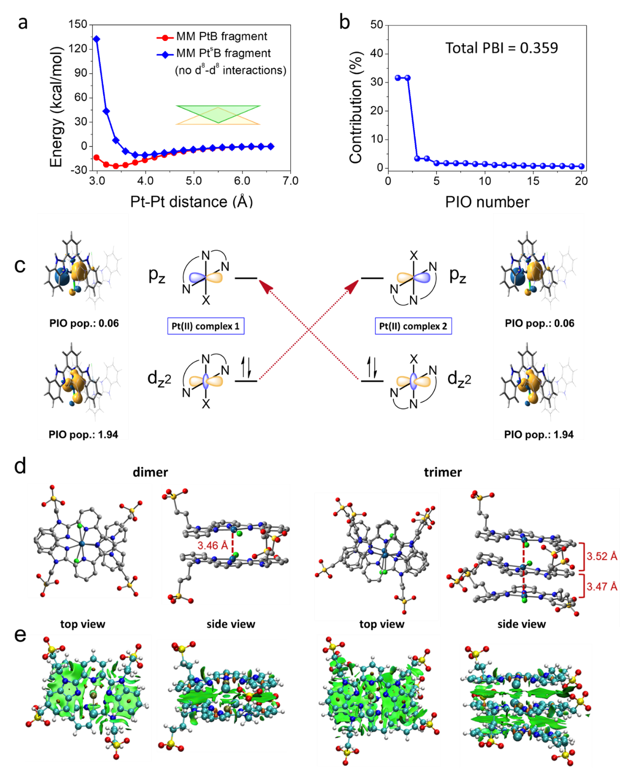 图3:Pt(II)配合物的主轨道相互作用和非共价分子间相互作用分析。