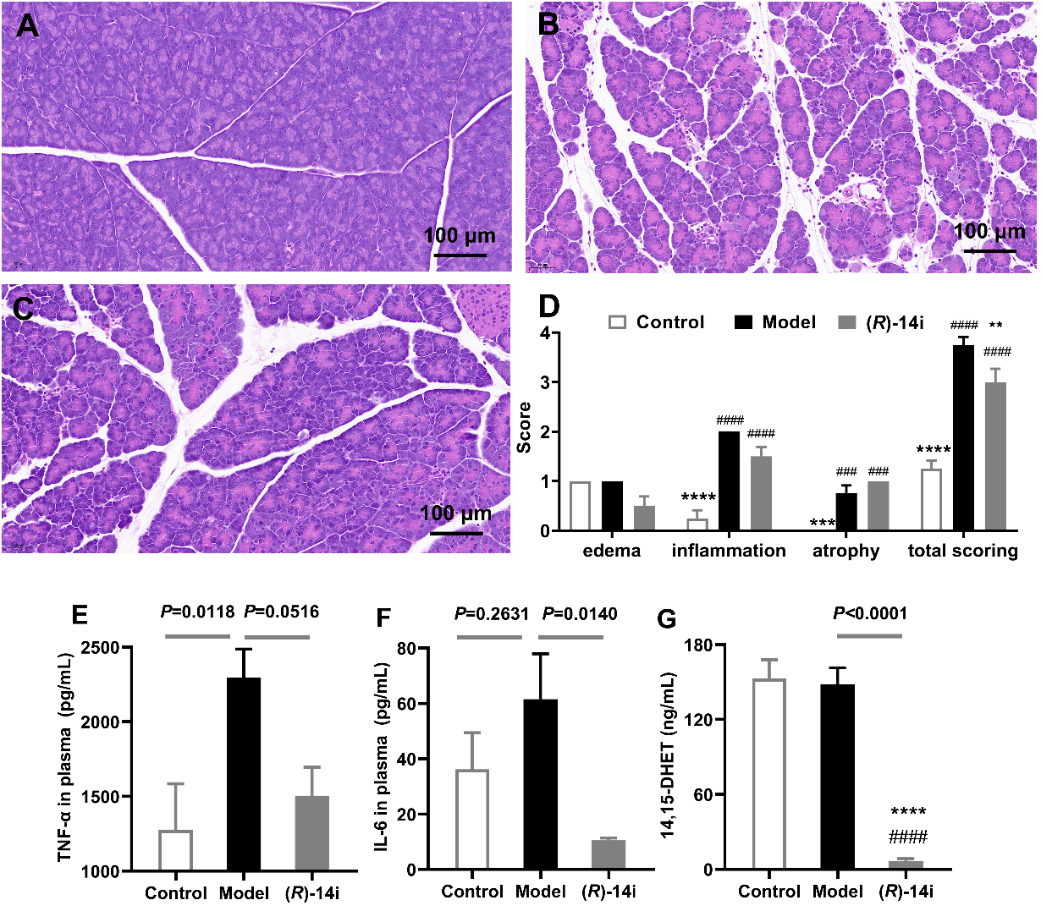 图3 化合物(R)-14i在急性胰腺炎小鼠模型中的治疗效果