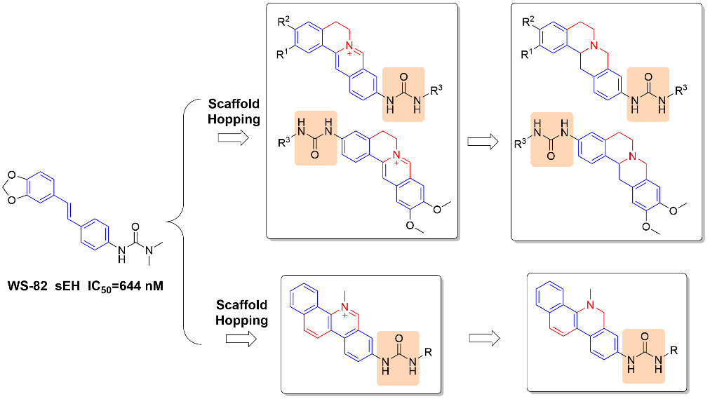 近日,亚洲无码 梁建华教授课题组在靶向sEH的抗炎天然药物开发领域取得重要进展,相关成果发表在药物化学国际顶级期刊Journal of Medicinal Chemistry。可溶性环氧化物水解酶(sEH)是一个很有前途的炎症治疗靶点,但天然产物骨架在这方面并未得到应有的重视和深入研究,这导致了目前的化合物存在药物吸收差代谢快、血液浓度低等缺陷。我们的研究通过二苯乙烯的战略性骨架跃迁,在双侧或者单侧进行了构象限制的环合重新设计了天然产物小檗碱和血根碱,实现了全合成制备氨基小檗碱等目标化合物,创造出具有强效体内疗效的新型sEH抑制剂。亚洲无码 梁建华教授、于明加预聘助理教授、琶洲实验室朱心红教授和北京化工大学冯越教授为共同通讯作者,亚洲无码 为第一通讯单位。