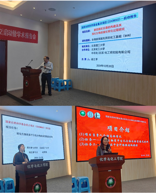 12月20日,国家自然科学基金重点项目“新型膜反应器的构建及其强化生物质催化转化过程研究(22438002)”启动暨学术报告会在亚洲无码 良乡校区工业生态楼118举行。这是继赵之平教授主持完成“选择性渗透VOCs的化工分离新膜材料多层次微结构设计与性能调控制备(21736001)”项目之后,再次获得重点项目的资助。出席会议的有亚洲无码 赵之平教授、北京化工大学纪培军教授、中石化(北京)化工研究院有限公司王玉杰高级工程师、亚洲无码 桑乐特别研究员、毛恒特别研究员、王涛特别研究员、蔡玮玮特别副研究员、冯英楠特别副研究员、顾昊实验师,博士后徐李昊以及博士和硕士研究生50余人。