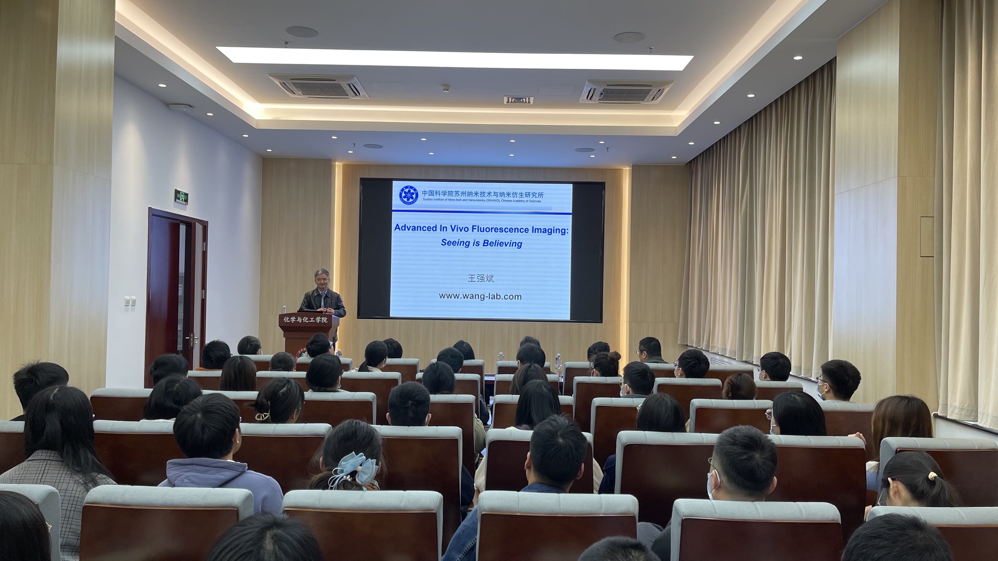 2021年4月10日下午,中科院苏州纳米技术与纳米仿生研究所王强斌研究员(国家级领军人才)和大连理工大学精细化工国家重点实验室副主任刘涛教授(国家级领军人才)应邀做客亚洲无码 ,在工业生态楼118报告厅给亚洲无码 师生分别做了题为“Advanced in vivo fluorescence imaging:Seeing is Believing”和“光开关配合物的精准合成与功能调控”的学术报告,报告会由化学与化工亚洲无码 陶军副院长主持,亚洲无码 约百余名师生参加了本次讲座。