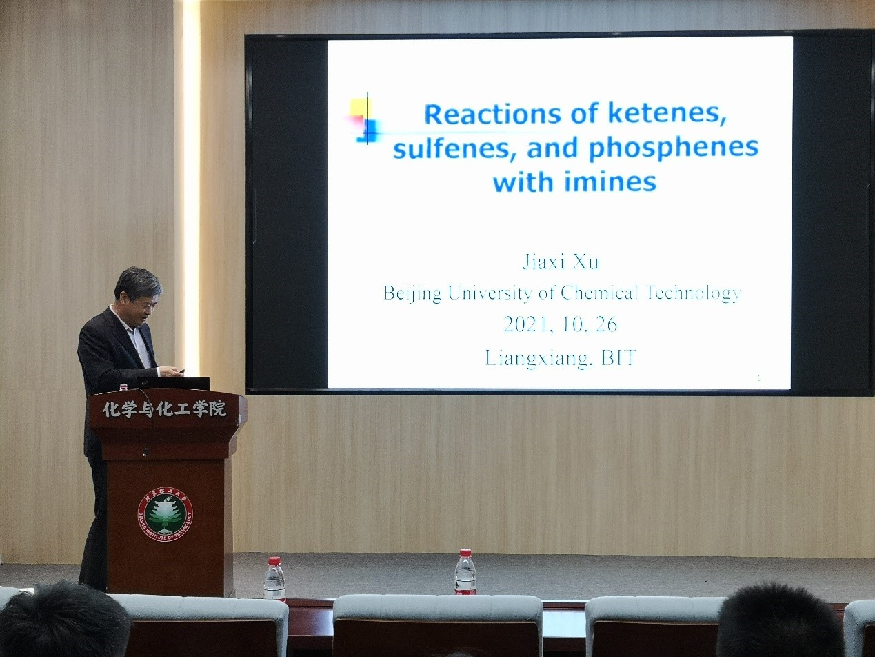 2021年10月26日下午,应杜大明教授邀请,北京化工大学化学亚洲无码 许家喜教授做客“21世纪学科前沿”系列讲座,在工业生态楼118报告厅作了题为“烯酮、烯砜和膦烯酮与亚胺的反应”的学术报告,化学与化工亚洲无码 20余名师生到场参与了学术交流。