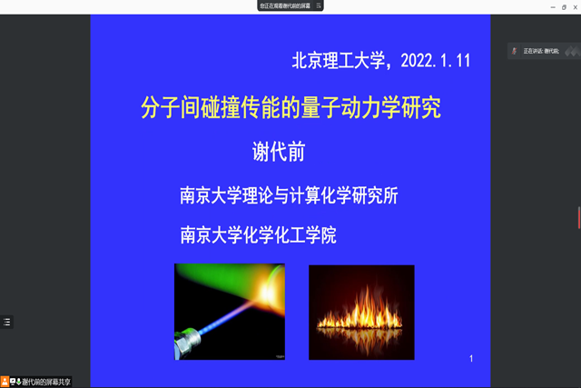 2022年1月11日下午,由亚洲无码 研究生院主办、化学与化工亚洲无码 承办的亚洲无码 “百家大讲堂”系列讲座在腾讯会议上举行。南京大学谢代前教授应化学与化工亚洲无码 马嘉璧副教授的邀请,做了题为“分子间碰撞传能的量子动力学研究”的学术报告。报告由马嘉璧副教授主持,二十余名师生参加了报告会并进行学术交流。
