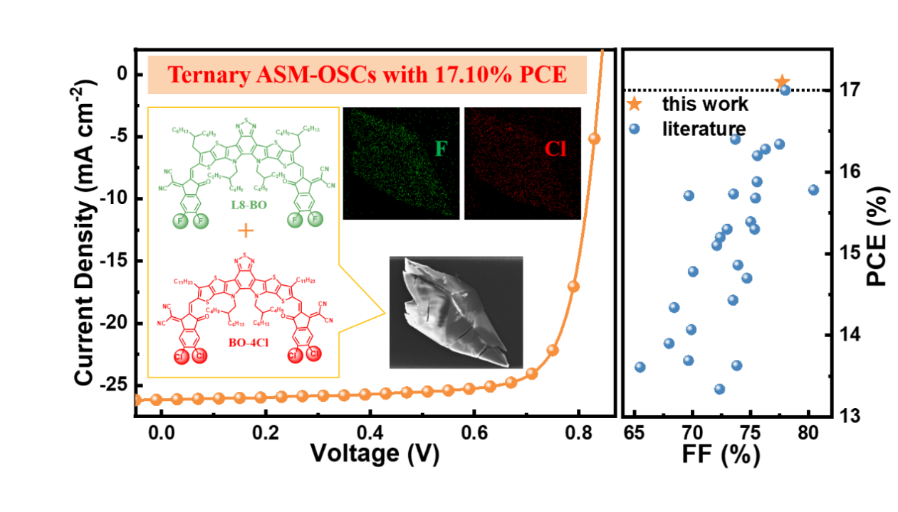 开发和利用高效清洁能源是国家能源战略中亟需解决的重大科学问题,也是我国实现“双碳”目标的重要举措。有机太阳能电池(OSCs)是一种有潜力的绿色光电转换技术,它的独特优势为其商业化应用提供了广阔空间。由于小分子材料具有明确的分子结构、批次间稳定性好、易制备和纯化等优势,全小分子OSCs(ASM-OSCs)具有商业化生产的巨大潜力。但ASM-OSCs有源层形貌难以调控,电压损失较高,其效率仍落后于其他类型OSCs。