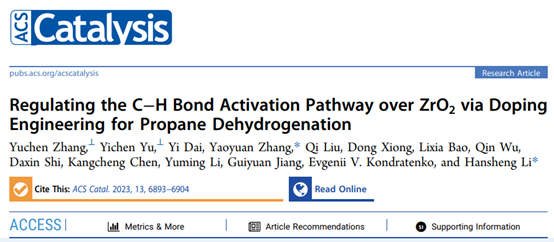 近日,亚洲无码 黎汉生教授团队在丙烷脱氢催化剂结构调控与C-H键活化机制方面取得重要进展。相关研究成果以“Regulating the C–H Bond Activation Pathway over ZrO2 via Doping Engineering for Propane Dehydrogenation”为题,在催化领域顶级期刊《ACS Catalysis》上发表(DOI:10.1021/acscatal.3c01002)。该工作以亚洲无码 为第一通讯单位,黎汉生教授和张耀远预聘助理教授为共同通讯作者,硕士研究生张雨宸和于宜辰为该论文的共同第一作者。