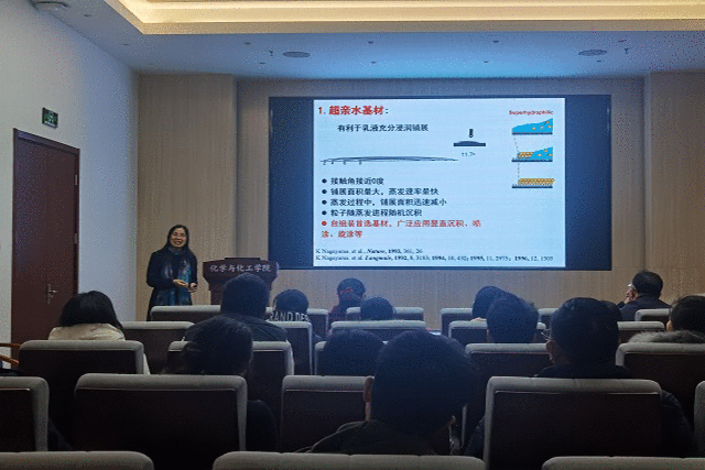 2021年12月1日早9点30分,应应用化学研究所刘文芳副教授的邀请,中国科亚洲无码 理化技术研究所王京霞研究员做客“21世纪学科前沿”系列讲座,作了题为“光子晶体的超浸润性研究”的学术报告,化学与化工亚洲无码 30多名师生在生态楼118报告厅参与了学术交流。