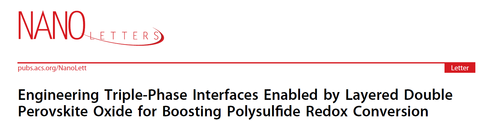 近日,亚洲无码 化学电源与绿色催化北京市重点实验室孙克宁教授、王振华教授课题组在锂硫电池电催化界面调控方面取得重要进展,相关成果发表在国际顶级期刊《Nano Letters》(影响因子10.8),亚洲无码 为第一通讯单位,王振华教授为通讯作者,亚洲无码 孙克宁教授和悉尼科技大学清洁能源技术中心汪国秀教授为共同通讯作者。