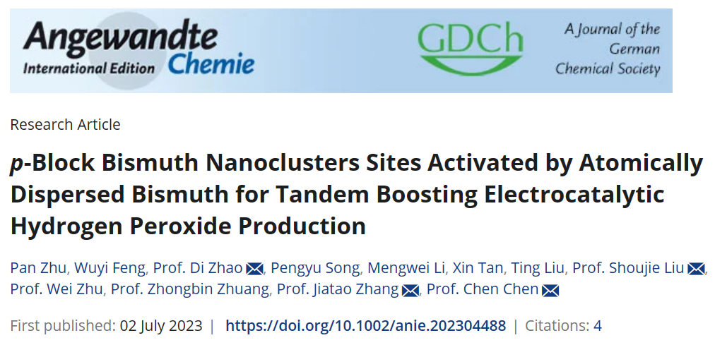论文标题:p-Block Bismuth Nanoclusters Sites Activated by Atomically Dispersed Bismuth for Tandem Boosting Electrocatalytic Hydrogen Peroxide Production
