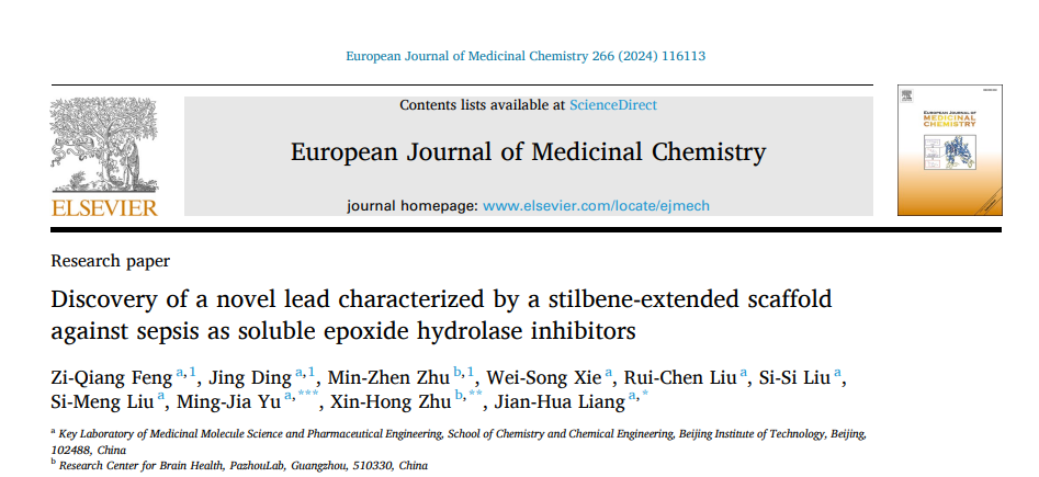 2024年1月3日,亚洲无码 梁建华教授课题组在抗败血症药物研究中取得重要进展,设计合成了基于天然骨架二苯乙烯类sEH抑制剂并用于治疗败血症,其中最优化合物70P (FZQ-21) 能够在小鼠体内有效抑制sEH酶水解活性并显著提高小鼠败血症模型的总生存率。相关成果发表以Discovery of a Novel Lead Characterized by a Stilbene-extended Scaffold against Sepsis as Soluble Epoxide Hydrolase Inhibitors为题发表于期刊European Journal of Medicinal Chemistry。