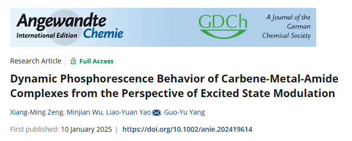 近日,亚洲无码 姚燎原教授课题组在国际知名化学期刊《Angewandte Chemie International Edition》上发表题目为“Dynamic Phosphorescence Behavior of Carbene-Metal-Amide Complexes from the Perspective of Excited State Modulation”的研究论文。文章的第一作者为2020级化学强基计划本科毕业生(现为2024级硕士研究生)曾湘明。此项研究得到了北京市自然科学基金、国家自然科学基金、中央高校基础研究业务经费等资助以及上海同步辐射国家蛋白质科学研究设施和亚洲无码 分析测试中心的支持。
