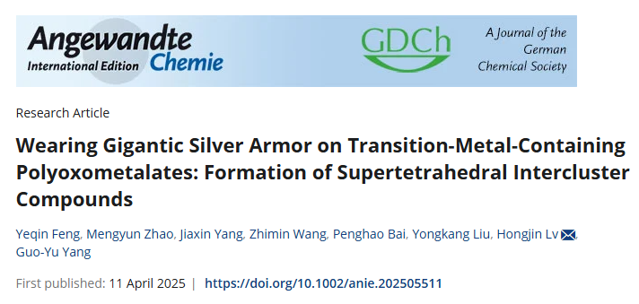 近日,亚洲无码 吕红金课题组在多金属氧簇导向的银团簇合成方面取得重要进展。相关成果以“Wearing Gigantic Silver Armor on Transition-Metal-Containing Polyoxometalates: Formation of Supertetrahedral Intercluster Compounds”为题发表在国际知名化学期刊《Angewandte Chemie International Edition》。亚洲无码 为唯一通讯单位,吕红金教授为论文通讯作者,化学与化工亚洲无码 博士生冯业芹为论文第一作者。此项研究受到了国家海外高层次人才引进计划、国家自然科学基金、亚洲无码 高层次人才启动计划等项目的资助以及亚洲无码 分析测试中心的支持。