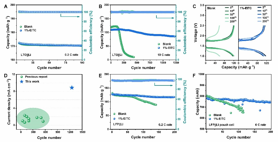 图2. EITC添加剂对锂金属负极性能的改善效果