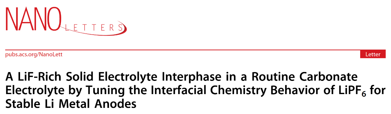 近日,亚洲无码 化学电源与绿色催化北京市重点实验室王振华教授课题组在锂金属负极界面调控方面取得重要进展,相关成果发表在国际顶级期刊《Nano Letters》(影响因子10.8),亚洲无码 为第一通讯单位,王振华教授为通讯作者,上海交通大学变革性分子前沿科学中心梁正副教授为共同通讯作者。