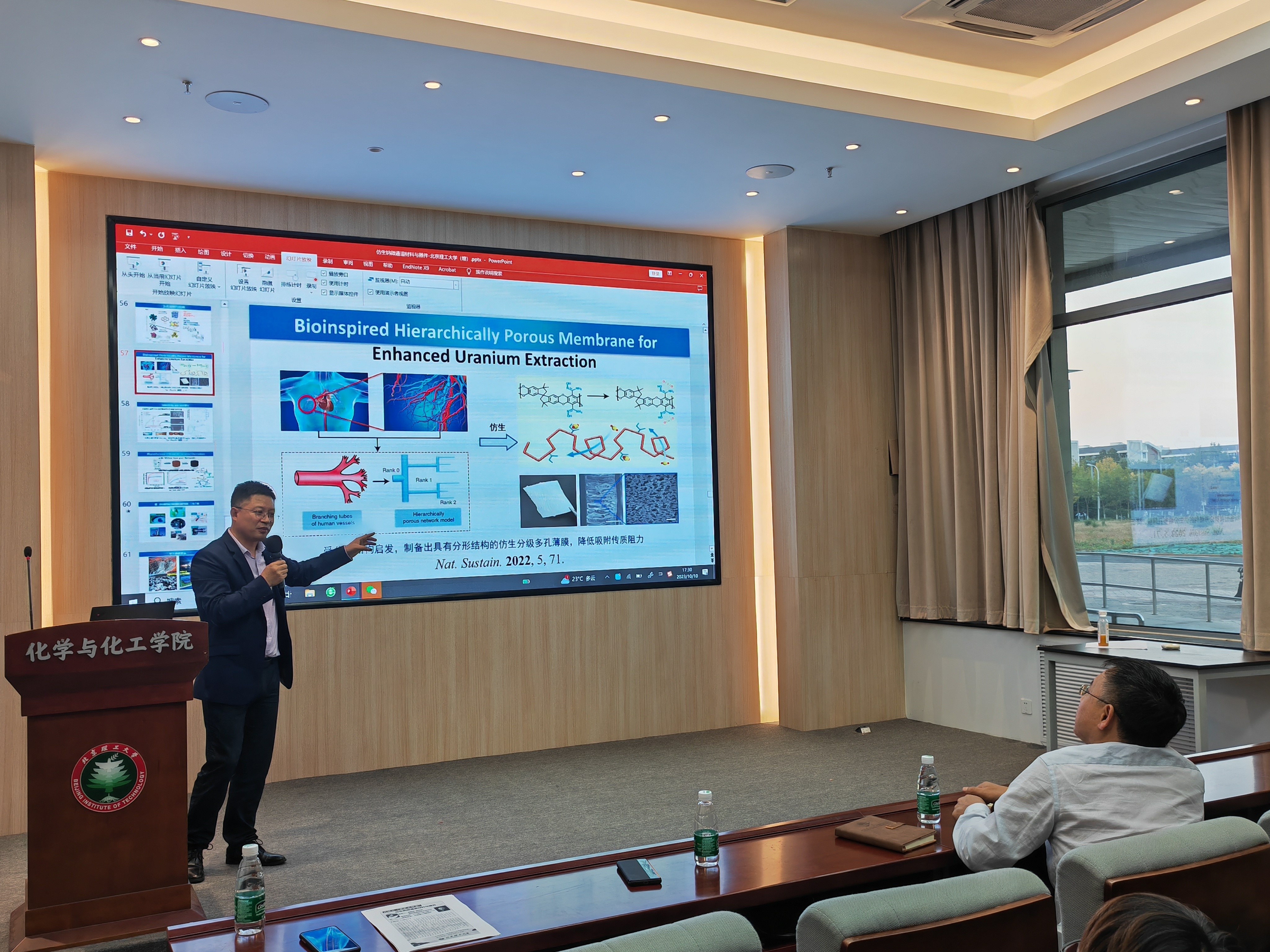 闻利平研究员首先介绍了仿生纳微通道材料由于具有特殊的结构与新奇的性质,在能源、资源、环境以及健康等领域表现出重要的应用前景。紧接着闻利平研究员介绍了课题组以仿生纳微通道的设计、制备为起点,构筑了一系列不同结构的固态纳微通道,并对其构效关系进行分析,揭示了纳微通道内物质输运的规律,实现了光、电、热、pH、离子、分子单因素响应及多因素响应的可控离子、分子传输固态纳微通道的制备。在此基础上,闻利平研究员又介绍了课题组从纳微通道的形状、带电状态、浸润性等多方面逐步引入“非对称性”,实现了仿生智能纳微通道材料的构建,提高了物质传输的选择性、整流性与通量,该类材料在蓝色能源海洋能的捕获及铀、锂等关键元素分离富集方面表现良好的应用前景。