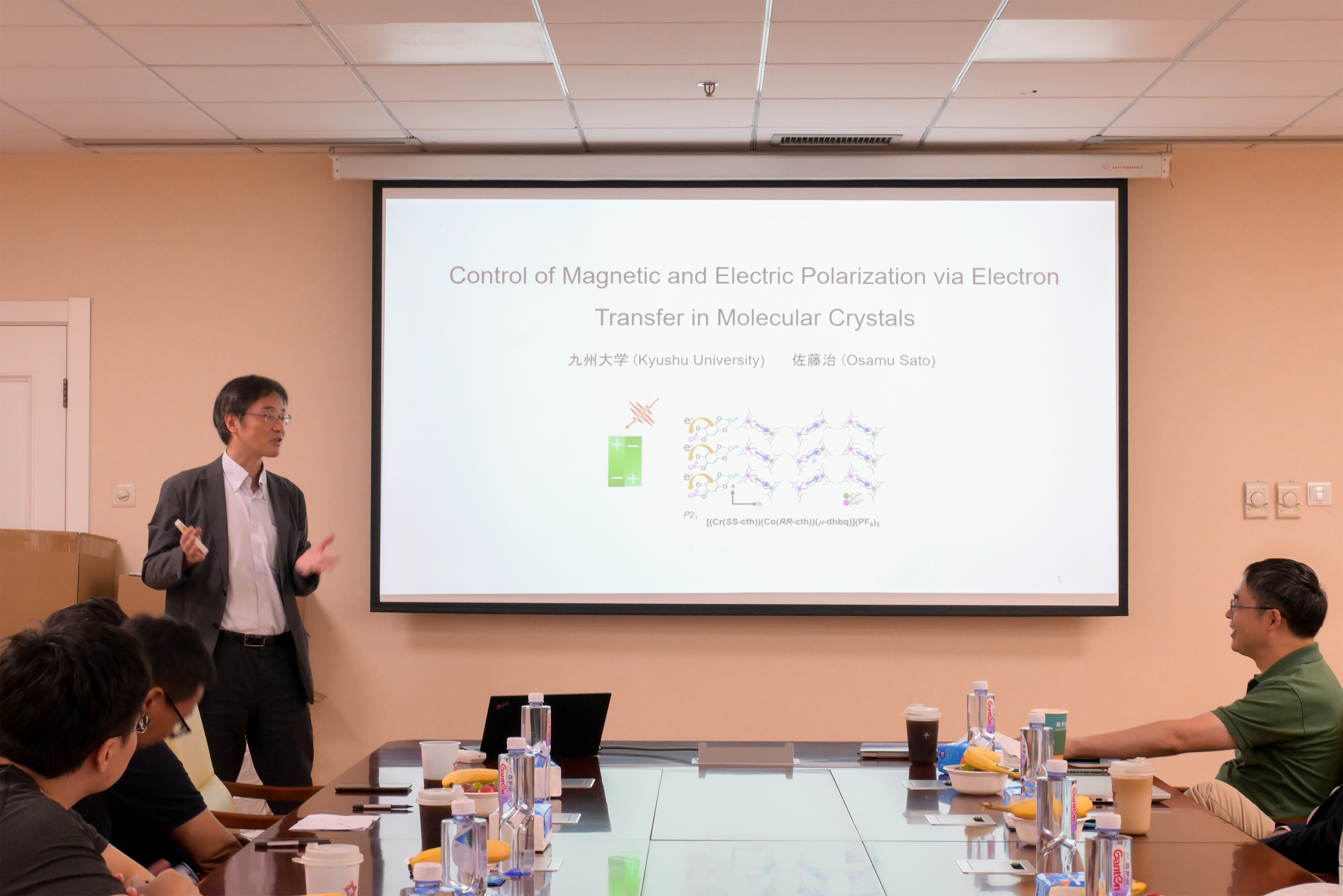 在报告会交流环节,Sato教授与陶军副院长、姚子硕等老师就磁性与电学晶体的设计思路进行了热烈的探讨,对在同学们提出的问题做了深入细致的解答,与会师生收获颇丰。