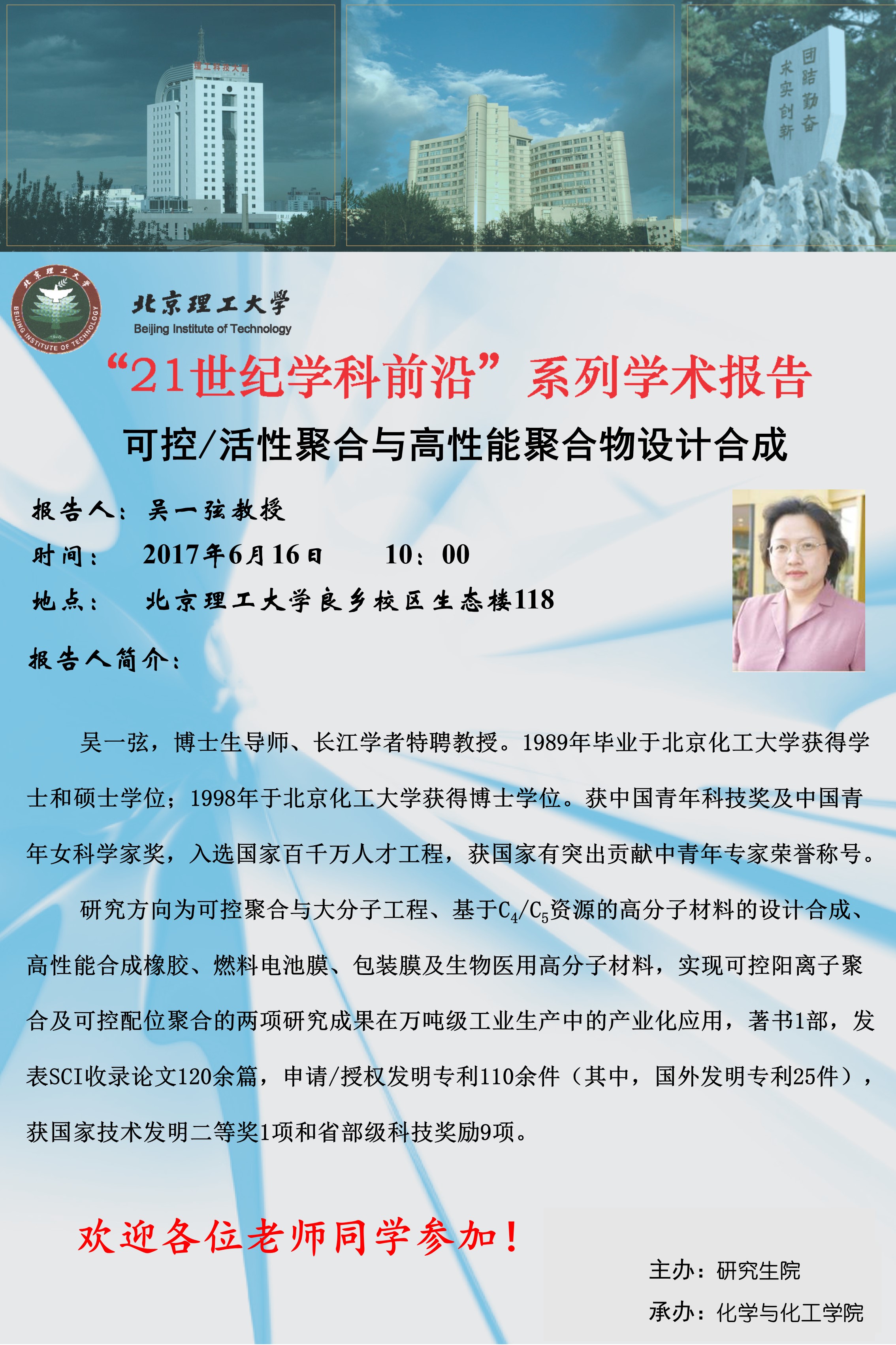 “21世纪学科前沿”吴一弦教授学术报告通知