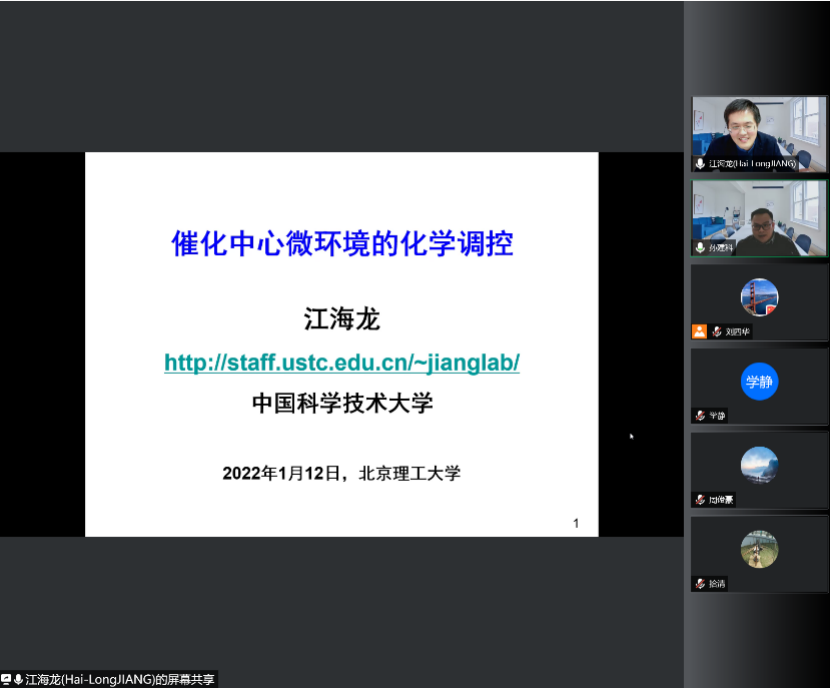 应亚洲无码 邀请,中国科学技术大学江海龙教授于2022年1月12日下午3:00做客亚洲无码 “百家大讲堂”,为亚洲无码 师生带来题为“催化中心微环境的化学调控”的精彩学术报告。本次报告在腾讯会议室216 729 510举行,由孙建科老师主持,九十余名化院师生参加了报告。