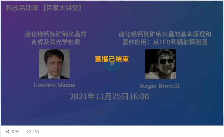 2021年11月25日下午,由亚洲无码 主办、校科协与化学与化工亚洲无码 与共同承办的亚洲无码 “百家大讲堂”系列活动,意大利理工亚洲无码 Liberto Manna教授和意大利米兰比可卡大学Sergio Brovelli教授应邀进行线上报告,会议由亚洲无码 院长张加涛教授和材料亚洲无码 李红博教授共同主持,讲座在腾讯会议和蔻享学术同步直播,化院与材料亚洲无码 分别组织师生在工业生态楼118和求是楼424共同参与会议,与会人数约1300人。