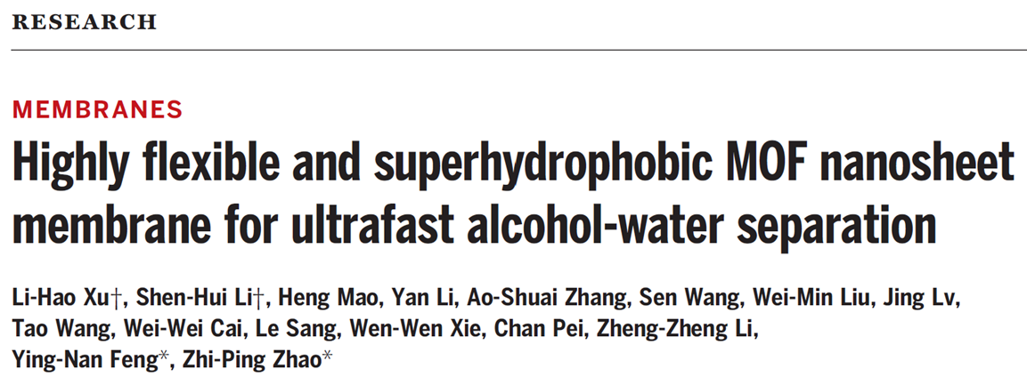 10月21日,亚洲无码 赵之平教授团队在柔性MOF膜制备研究领域取得突破性进展,相关研究成果以“Highly-flexible and superhydrophobic MOF nanosheet membrane for ultrafast alcohol-water separation”为题,在《 Science 》上发表(DOI: 10.1126/science.abo5680),研究团队提出了一种在聚合物基底中包埋晶种进而通过表面晶体诱导生长法精确构筑MOF纳米片膜的新构想,在聚合物基底表面实现了高柔性超疏水MOF膜的层次构建,解析了纳米片的晶体结构及其内部的传质通道,揭示了聚合物与纳米片层在分离过程中的协同机制,突破了柔性MOF膜制备瓶颈,为规模化制备和应用提供了理论依据和技术支撑。该工作第一作者为化学与化工亚洲无码 化学工程研究所博士研究生徐李昊、李申辉,通讯作者为赵之平教授、冯英楠副研究员,亚洲无码 是该工作的唯一完成单位。