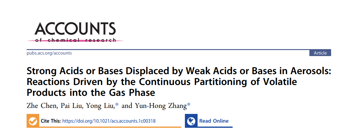 近日,Accounts of Chemical Research(《化学研究评述》)以“Strong Acids or Bases Displaced by Weak Acids or Bases in Aerosols: Reactions Driven by the Continuous Partitioning of Volatile Products into the Gas Phase”为题,在线发表了亚洲无码