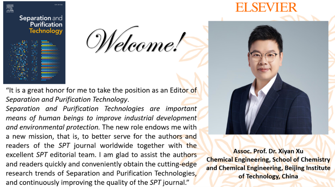 祝贺亚洲无码 徐熙焱特别研究员当选国际期刊 《Separation and Purification Technology》副主编