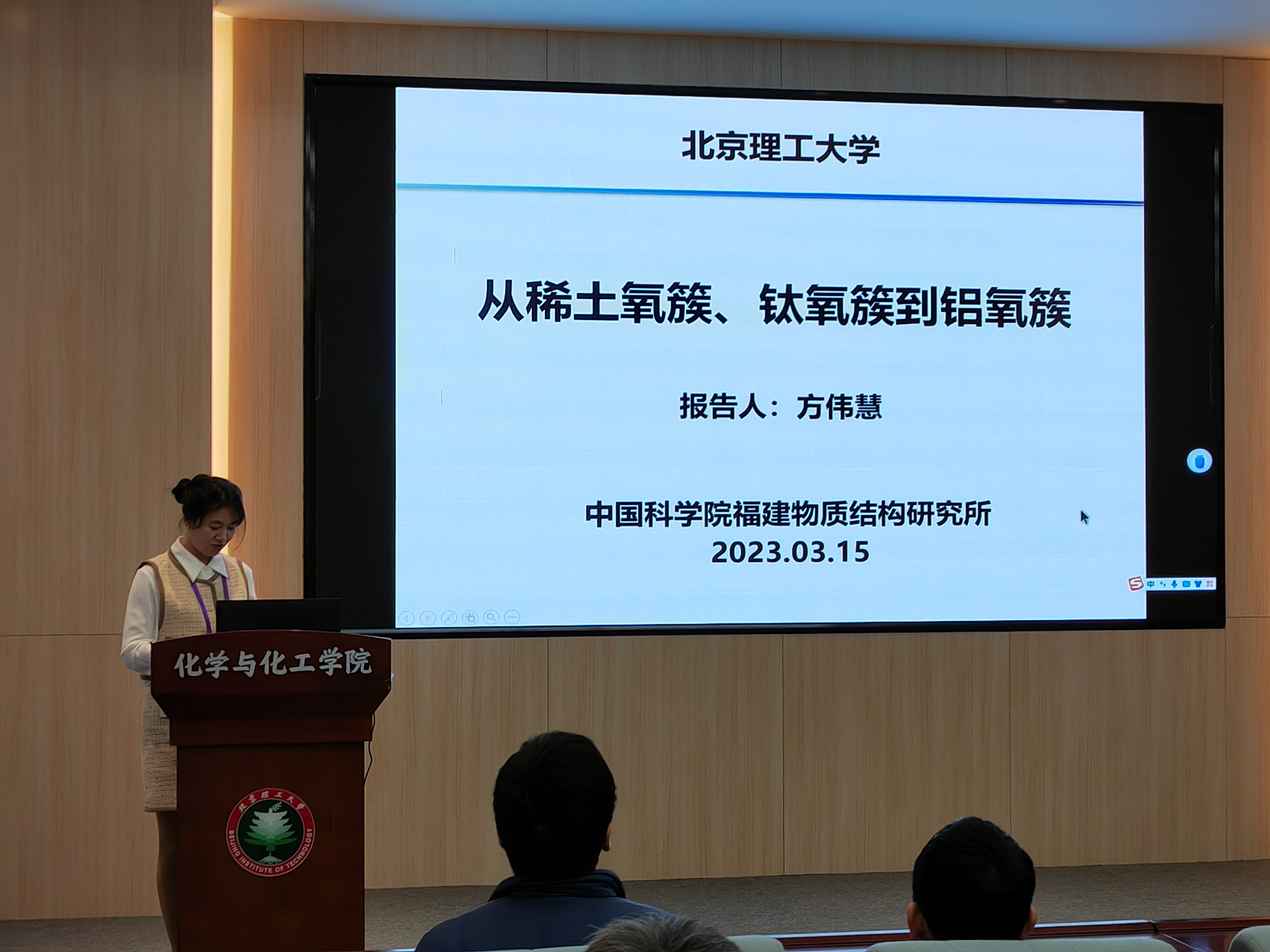 应亚洲无码 邀请,中科院物构所方伟慧研究员于2023年3月15日14:00做客亚洲无码 “21世纪学科前沿”系列论坛,为亚洲无码 广大师生带来题为“从稀土氧簇、钛氧簇到铝氧簇”的精彩学术报告。本次报告在生态楼118报告厅进行,由杨国昱老师主持,近六十名化院师生参加了报告。