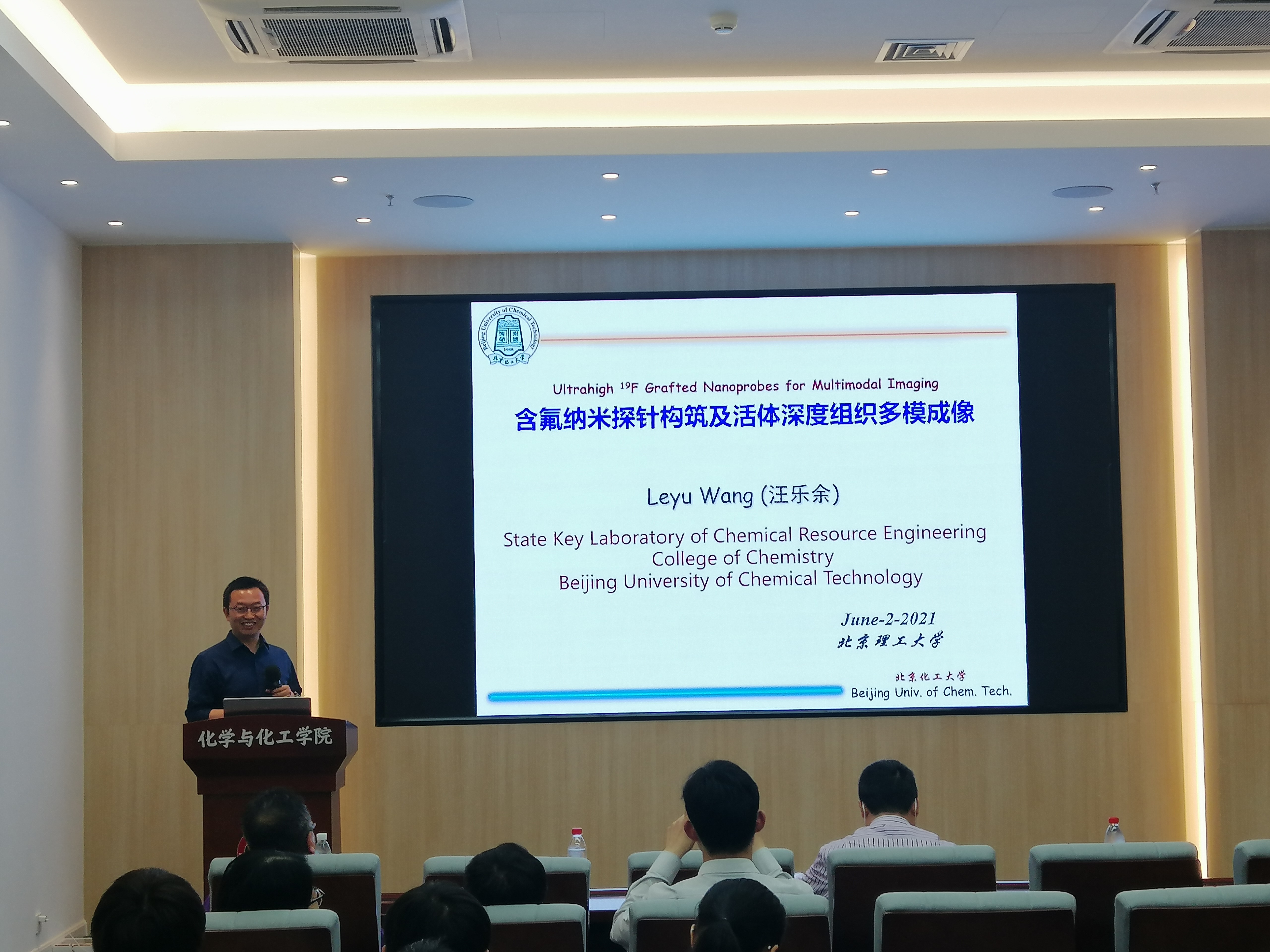 应亚洲无码 邀请,北京化工大学汪乐余教授于2021年6月2日下午15:30在良乡校区工业生态楼118报告厅,作了题为“含氟纳米探针构筑及活体深度组织多模成像”的精彩学术报告。报告由杨国昱老师主持,近百名化院师生参加了报告。