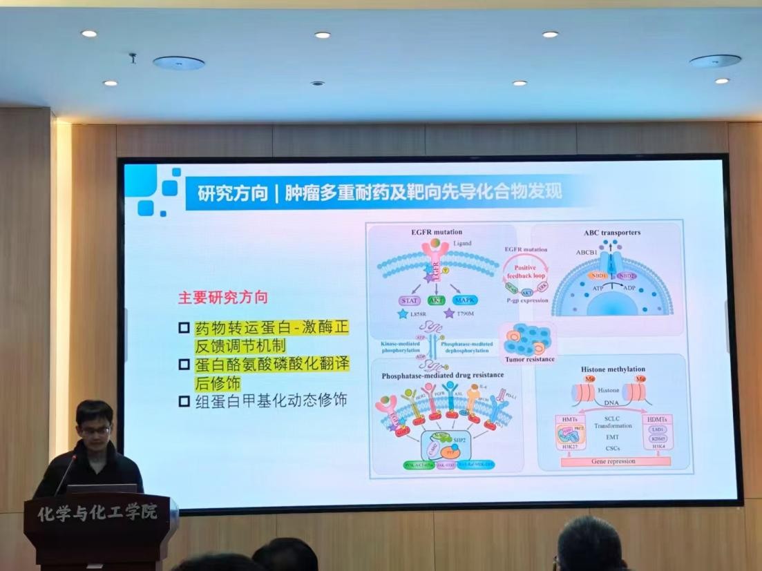 余斌教授深入探讨了靶向表皮生长因子受体(EGFR)相关通路在克服肿瘤耐药性方面的最新研究进展。EGFR突变与肿瘤耐药密切相关,尤其是针对T790M突变的第三代EGFR抑制剂已成为非小细胞肺癌(NSCLC)治疗的一线药物。余教授详细介绍了其课题组在EGFR靶向药物研发方面的进展,并探讨了多靶点治疗和药物联合疗法在克服耐药性问题中的潜力。余教授还分享了其团队在发现克服肿瘤耐药的先导化合物方面的研究成果,强调了深入理解EGFR突变及其引发的耐药机制在NSCLC靶向治疗中的重要性。此次讲座不仅为亚洲无码 的师生提供了丰富的学术见解,还进一步加强了郑州大学与亚洲无码 在科研领域的合作与交流。展望未来,两校将继续深化合作,共同推动我国药学与新药创制领域的创新与发展。