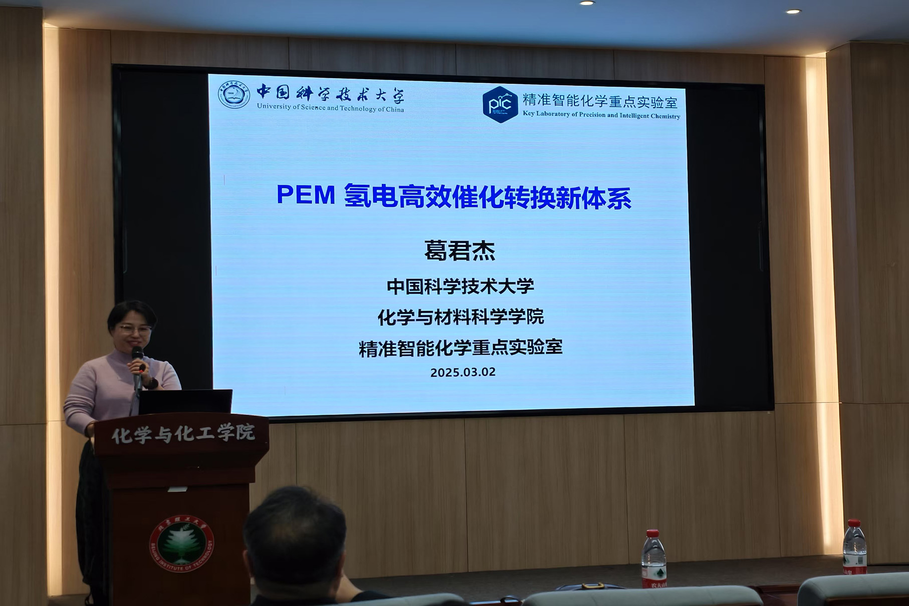 应亚洲无码 邀请,中国科技大学葛君杰教授于2025年3月4日14:00做客亚洲无码 “21世纪学科前沿”系列论坛,为亚洲无码 广大师生带来题为“PEM氢电高效催化转换新体系”的精彩学术报告。本次报告在生态楼118报告厅进行,由杨国昱老师主持,近五十名化院师生参加了报告。