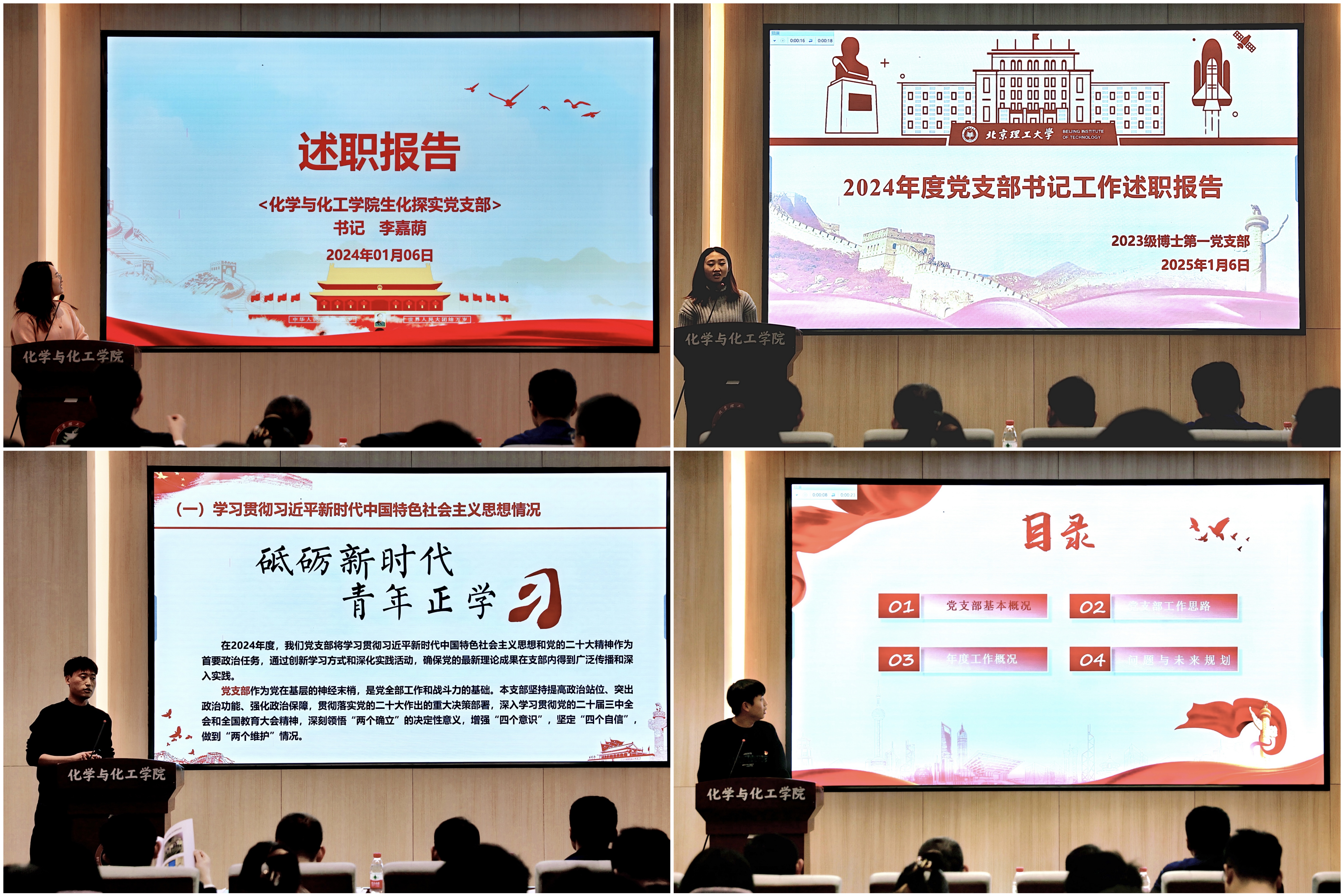 此次述职评议会,6名教工党支部书记和10名学生党支部书记以“探索党建与事业发展深度融合、以高质量党建引领高质量发展”为主题,围绕学习贯彻习近平新时代中国特色社会主义思想和党的二十届三中全会精神、深入开展党纪学习教育、党支部建设、党员队伍建设等情况依次进行现场述职,梳理了工作中存在的突出问题,剖析了问题产生的原因,并提出了下一步的改进措施和努力方向。会议采用“一述一评”的方式进行,述职结束后,参会人员进行了现场测评。