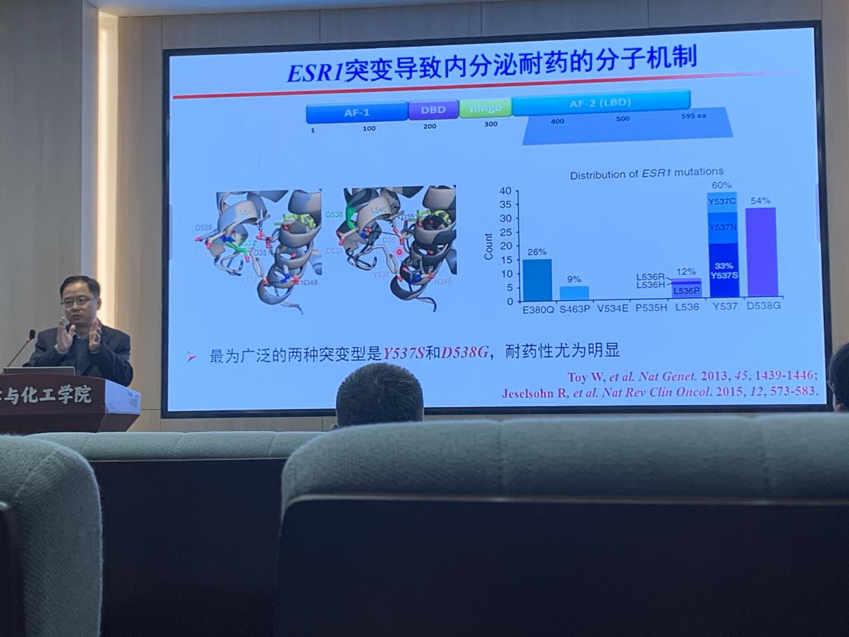 周教授还分享了其团队在药物设计和合成方面的创新方法,以及这些药物在临床前研究中的表现,特别强调了多靶点治疗和药物联合疗法在克服耐药性问题中的潜力。会场上师生们进行了深入的学术探讨。