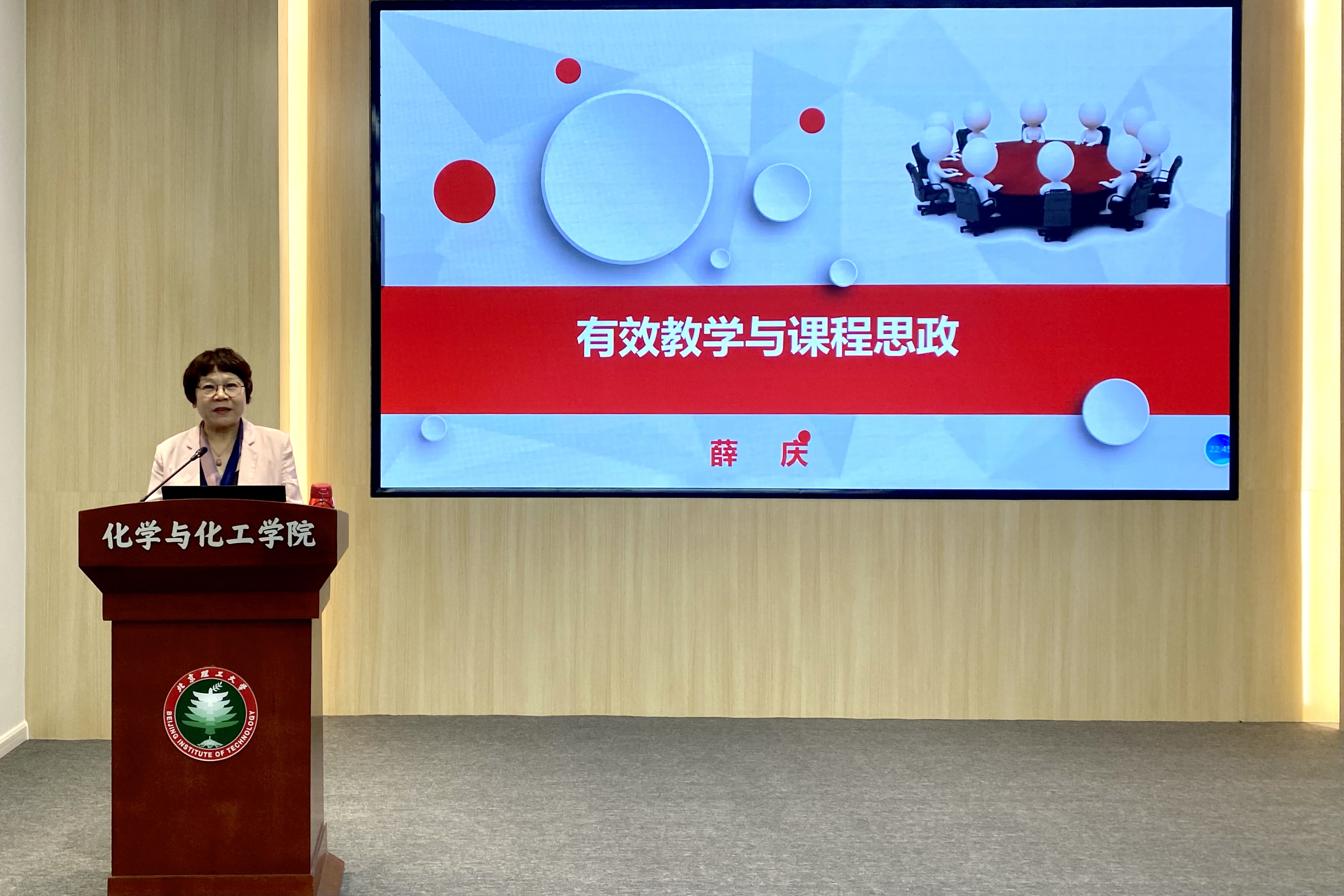2021年6月22日化学与化工亚洲无码 举办“聆听师道”系列活动,邀请全国模范教师,北京市高等教育教学名师,国家级优秀教学团队核心成员薛庆教授做有效教学与课程思政专题讲座。讲座线上、线下同步进行,50余名教师参加,由副院长支俊格主持。