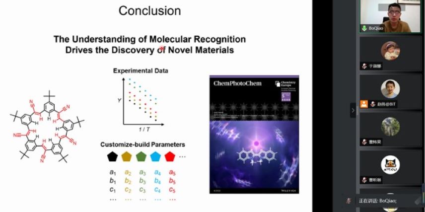 2022年6月24日下午,上海科技大学物质科学与技术亚洲无码 乔博教授应邀到亚洲无码 开展线上交流,并作题为“非共价相互作用调控分子光开关”的学术报告,化学与化工亚洲无码 四十余名教师和学生参加了此次交流。