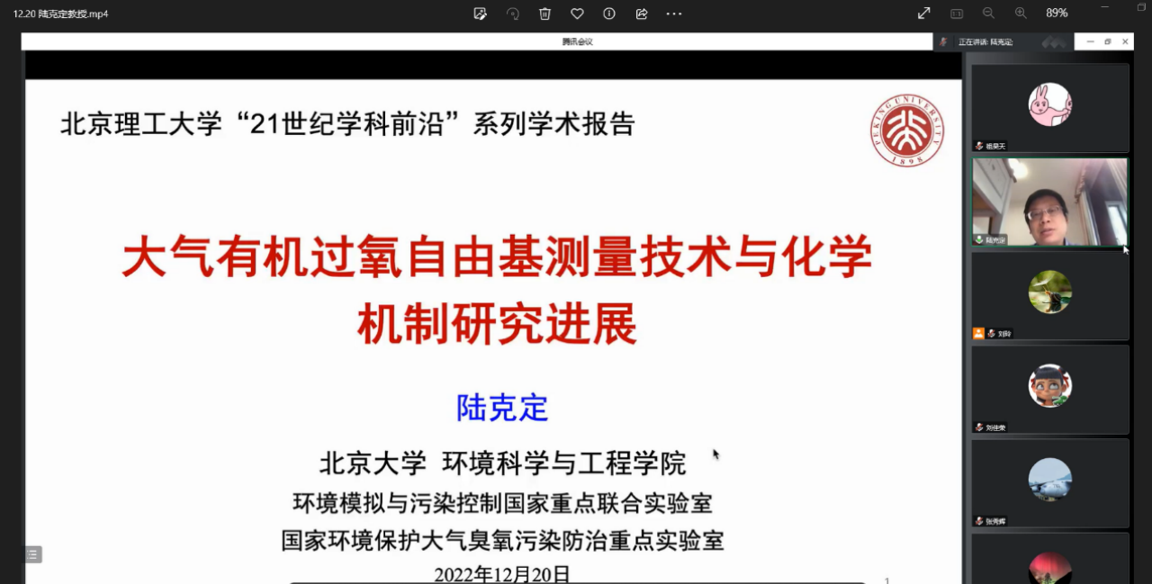 【21世纪学科前沿】北京大学陆克定教授受邀做题为“大气有机过氧自由基测量技术与化学机制研究进展”的学术报告