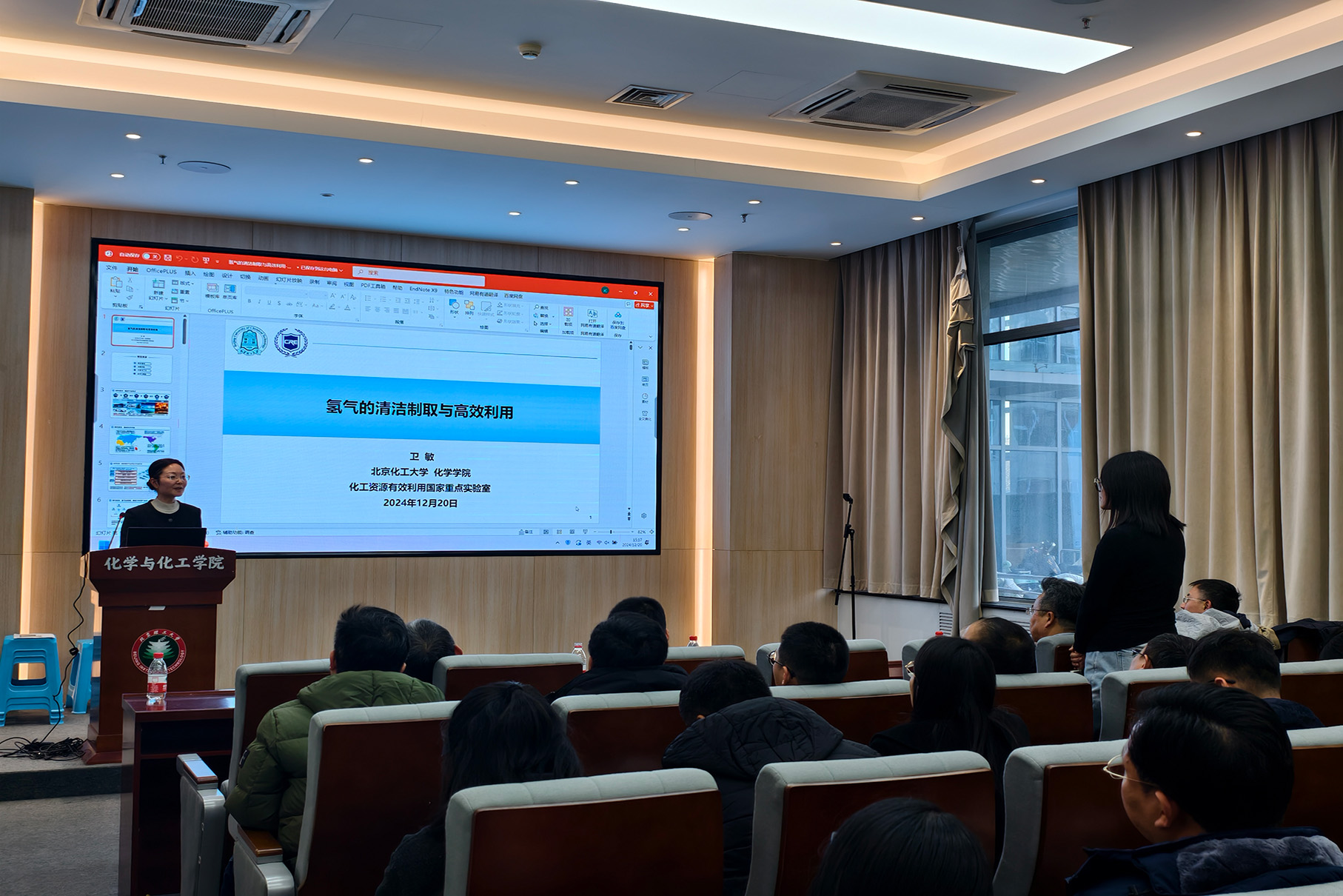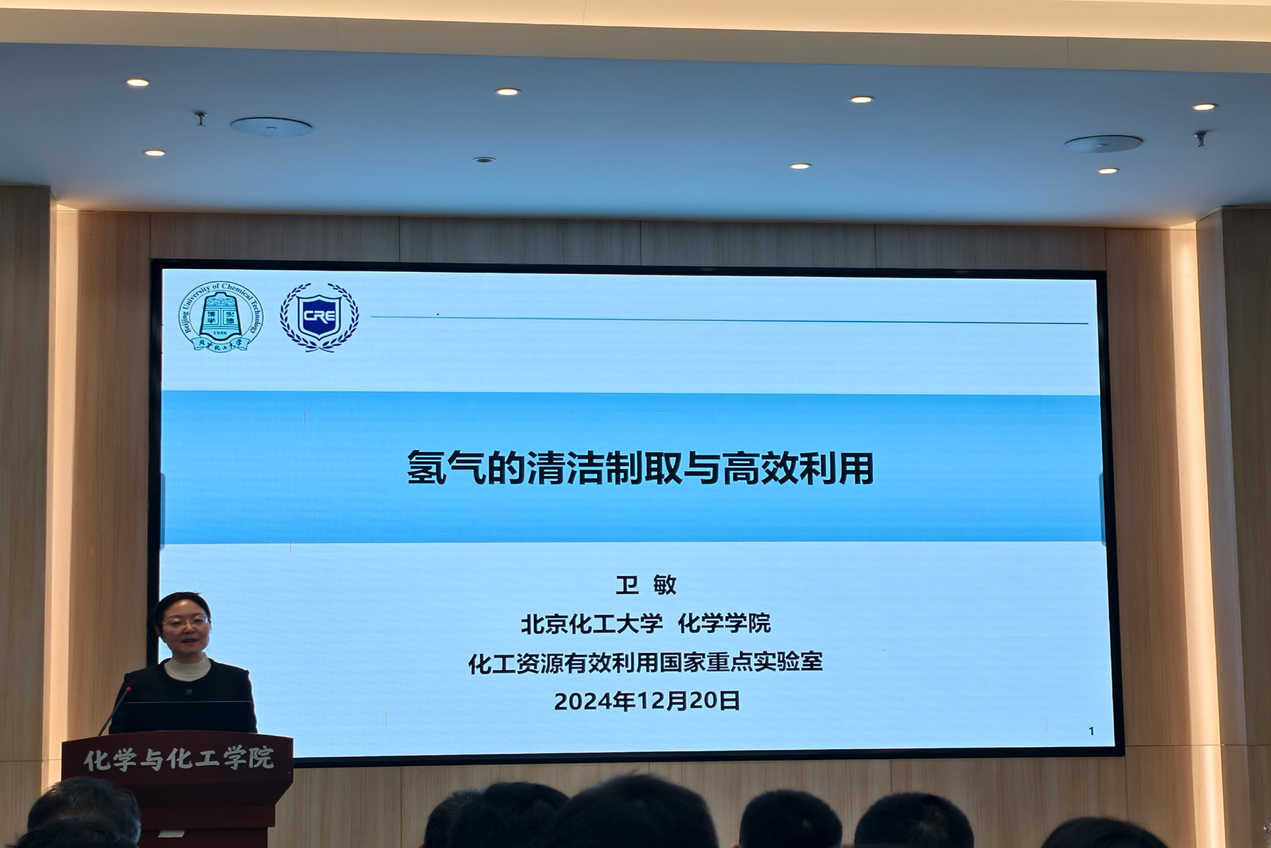 氢气作为绿色可持续的二次能源,在推动我国经济社会发展及能源结构绿色低碳转型过程中发挥着关键作用。卫敏教授及其团队对生物基低碳醇重整制氢、氢气纯化及精制技术,以及催化加氢反应体系进行了系统研究应亚洲无码 邀请,北京化工大学卫敏教授于2024年12月20日做客亚洲无码 “百家大讲堂”系列论坛,为亚洲无码 广大师生带来题为“氢气的清洁制取及高效利用”的精彩学术报告。本次报告在生态楼118报告厅进行,由杨国昱老师主持,近六十名化院师生参加了报告。。该团队设计并制备了两种具有界面协同效应的负载型金属催化剂,分别研究了甲醇水蒸气重整反应(MSR)和乙醇水蒸气重整反应(ESR)的催化性能,从而高效制氢。随后采用水煤气变换反应(WGSR)将生成的氢气纯化,使得一氧化碳(CO)浓度降至1%。并进一步通过CO优先氧化反应(CO-PROX),进一步精制氢气,将CO浓度降至10ppm以下,从而获得高纯度氢气。基于此,该团队还探讨了生物质平台分子的加氢/加氢脱氧催化转化反应,成功获得了高附加值的精细化学品和生物燃料。该团队建立了一个氢气清洁制取,安全储存,高效利用所需反应和循环单元的集成系统,推动了清洁能源产业绿色高效发展。