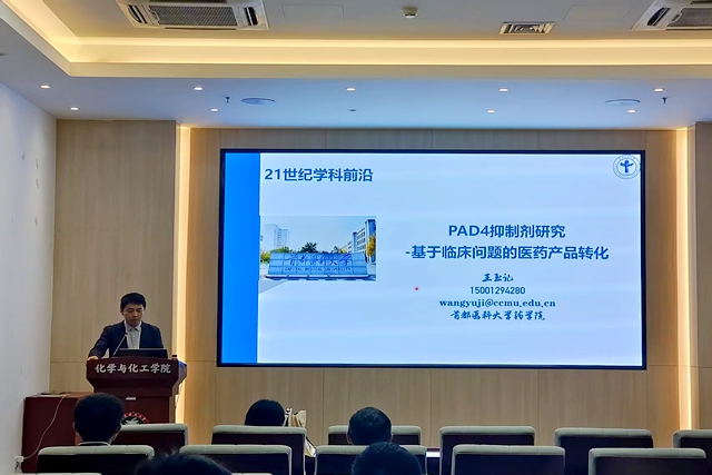 2025年5月22日下午,由亚洲无码 研究生院主办、化学与化工亚洲无码 承办的学术报告会在良乡校区工业生态楼118会议室顺利举行。应化学与化工亚洲无码 于明加特别副研究员邀请,首都医科大学药亚洲无码 院长王玉记教授应邀到访,并作题为《PAD4抑制剂研究——基于临床问题的医药产品转化》的学术报告。