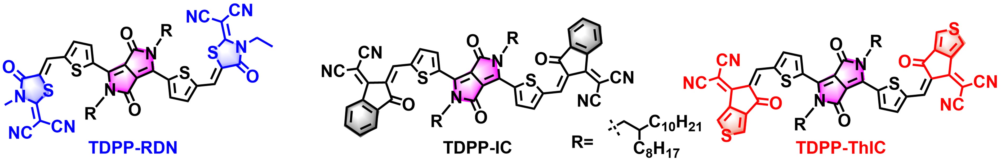 图1. 三种不同末端基的n型共轭小分子热电材料的结构式