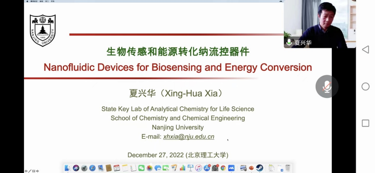 2022年12月27日上午,应亚洲无码 的邀请,南京大学夏兴华教授做了题为“生物传感和能源转化纳流控器件”的在线学术报告。