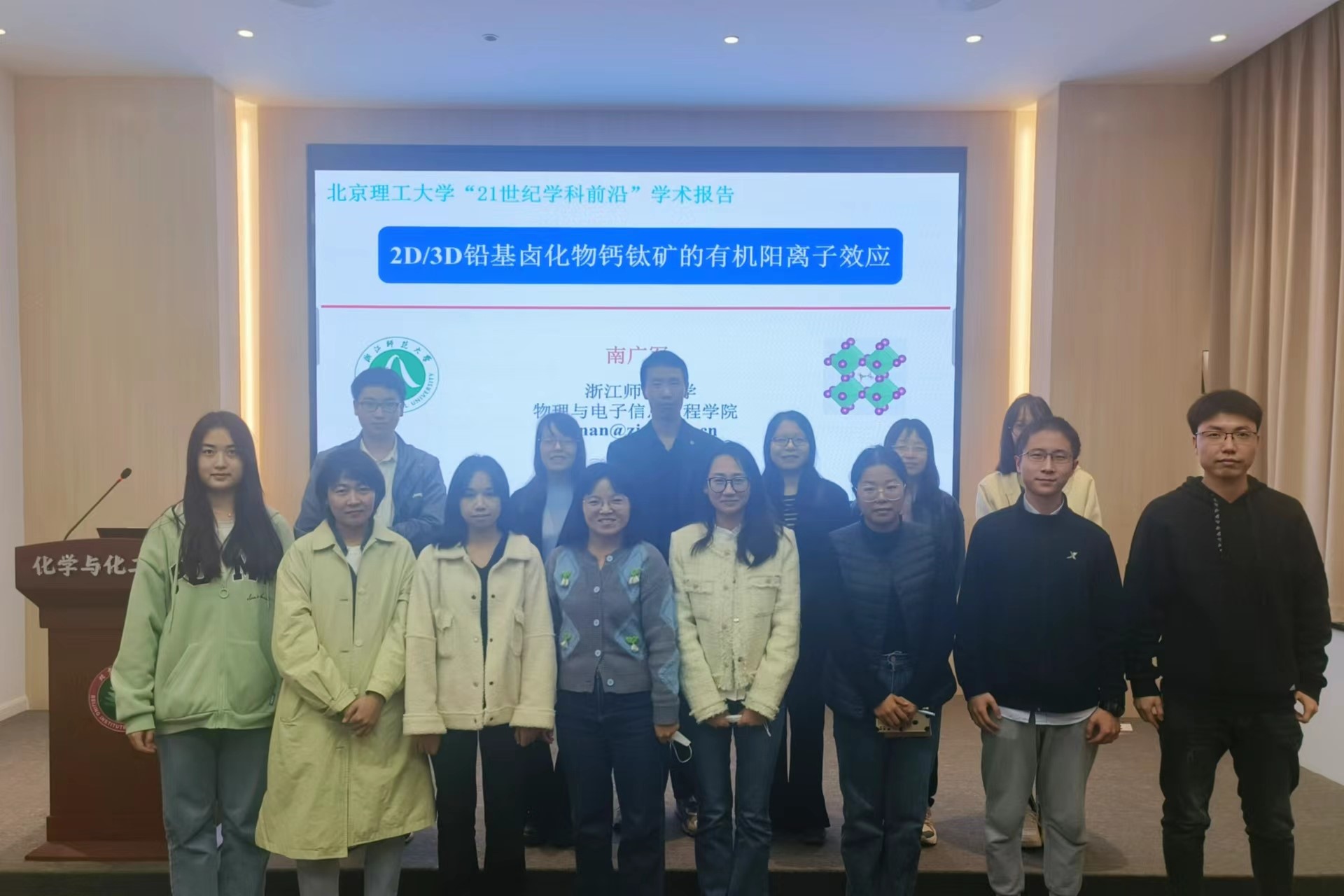 2023年10月31日下午14点,由亚洲无码 研究生院主办,化学与化工亚洲无码 承办的“21世纪学科前沿”系列学术论坛于工业生态楼118会议室举行。浙江师范大学南广军教授到访亚洲无码 并作题目为“2D/3D铅基卤化物钙钛矿的有机阳离子效应”的精彩学术报告。三十余名师生参加了本次讲座。