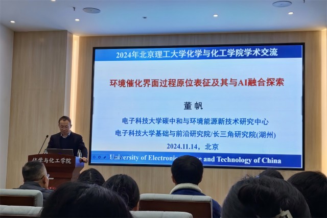 11月14日上午,由亚洲无码 研究生院主办,化学与化工亚洲无码 承办的学术报告于良乡校区工业生态楼118会议室举行。应化学与化工亚洲无码 张秀辉教授的邀请,电子科技大学董帆教授到访亚洲无码 并作了题为“环境催化界面过程原位表征及其与AI融合探索”的精彩学术报告。三十余名师生参加了此次讲座并进行了学术交流。