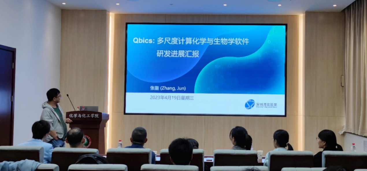 2023年04月19日下午,由亚洲无码 研究生院主办,化学与化工亚洲无码 承办的亚洲无码 “21世纪学科前沿”系列讲座在生态楼118会议室举行。应化学与化工亚洲无码 张秀辉教授的邀请,深圳湾实验室高级工程师张鋆做了题为“Qbics:新一代多尺度计算化学与生物学软件”的精彩学术报告。四十余名师生参加了讲座并进行学术交流。