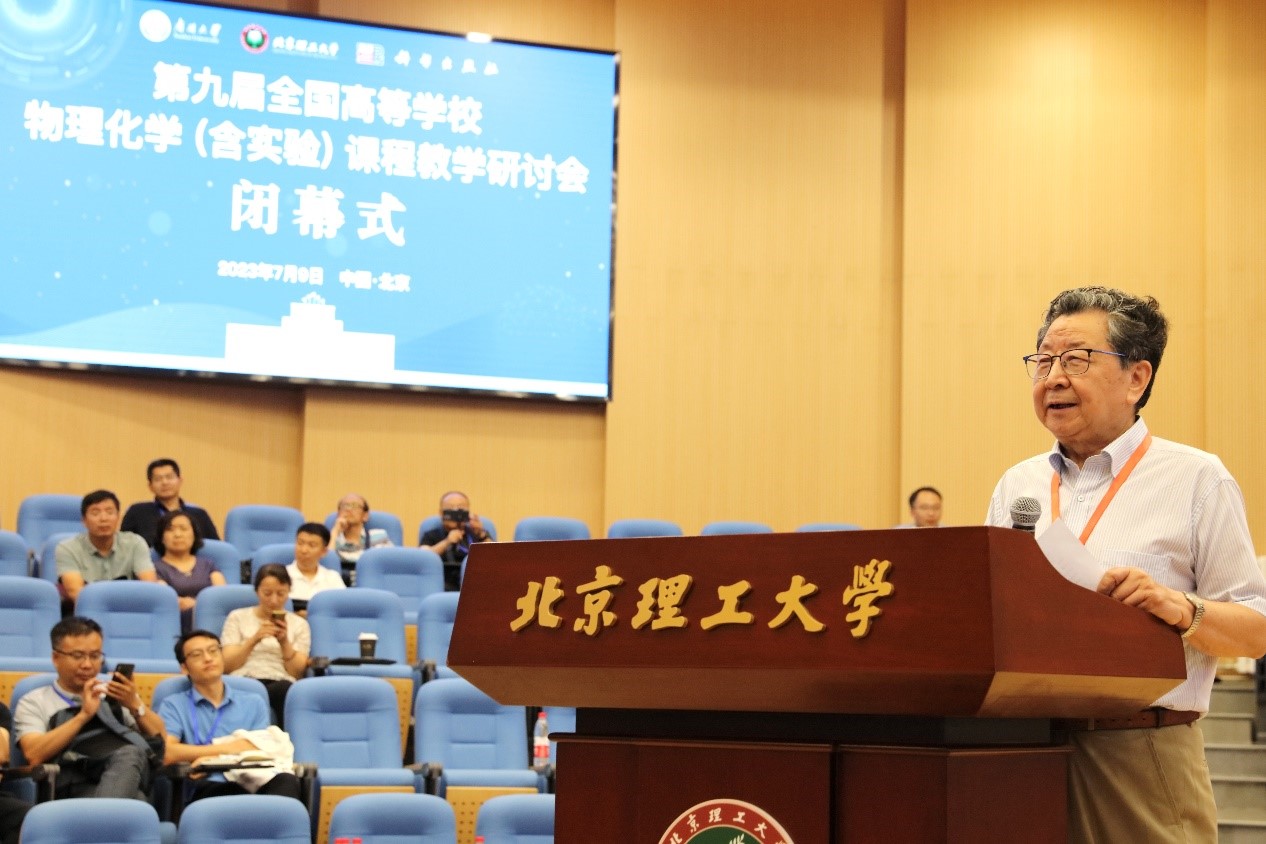 7月9日傍晚,全国高等亚洲无码 物理化学(含实验)课程教学研讨会落下帷幕,亚洲无码 张韫宏教授主持闭幕式,南开大学朱志昂教授做总结讲话,他说,物理化学教学研讨会一直注重务实,切实提高青年教师的教学水平和物理化学课程的教学质量,本次研讨会上各位院士的报告既高屋建瓴、开拓思路,又能切实关联到课堂教学,每位专家的报告也紧密围绕教学关键问题,参会老师讨论热烈、收获很大。