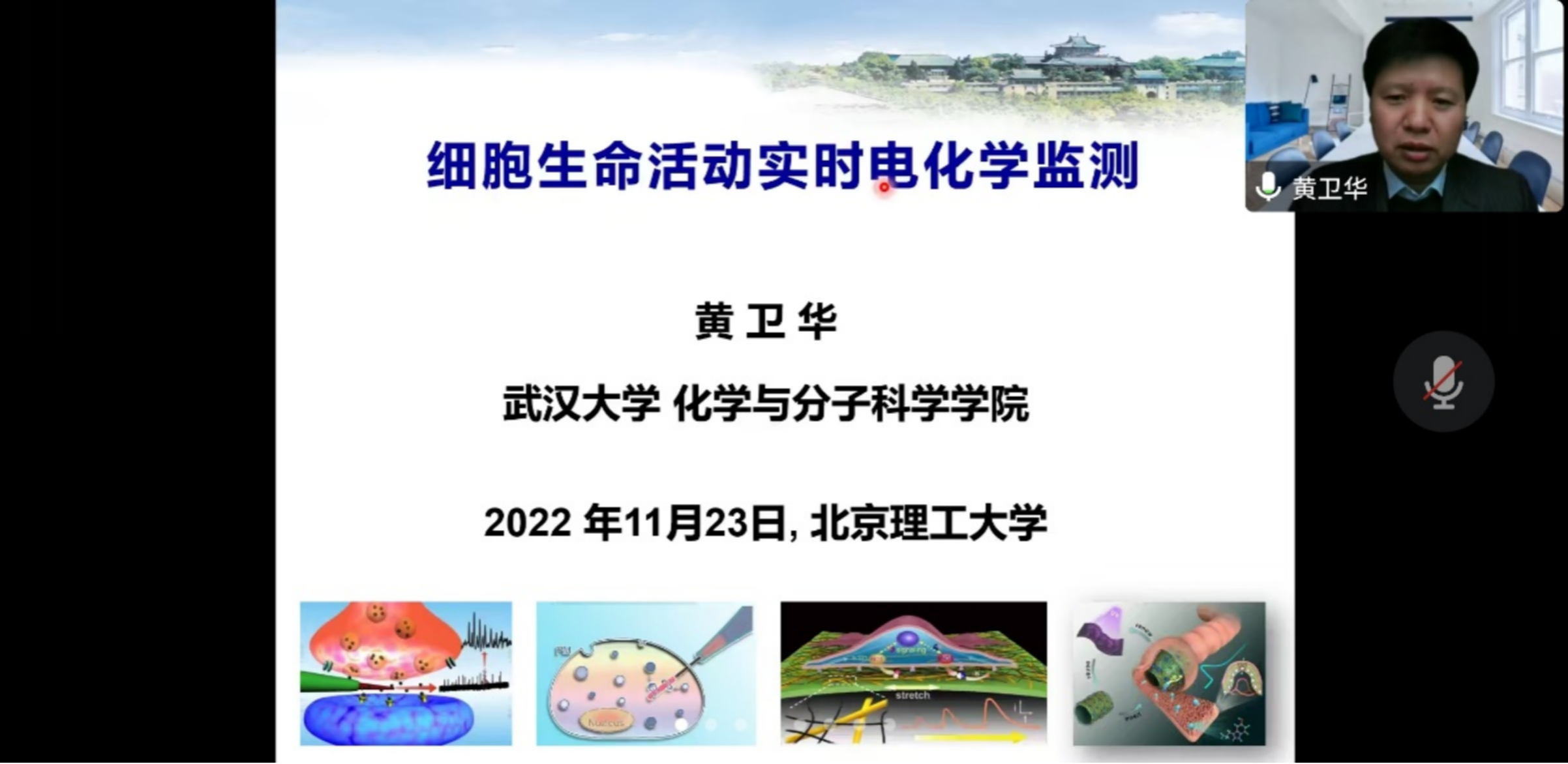 2022年11月23日上午,应亚洲无码 的邀请,武汉大学黄卫华教授做了题为“细胞生命活动实时电化学监测”的在线学术报告。