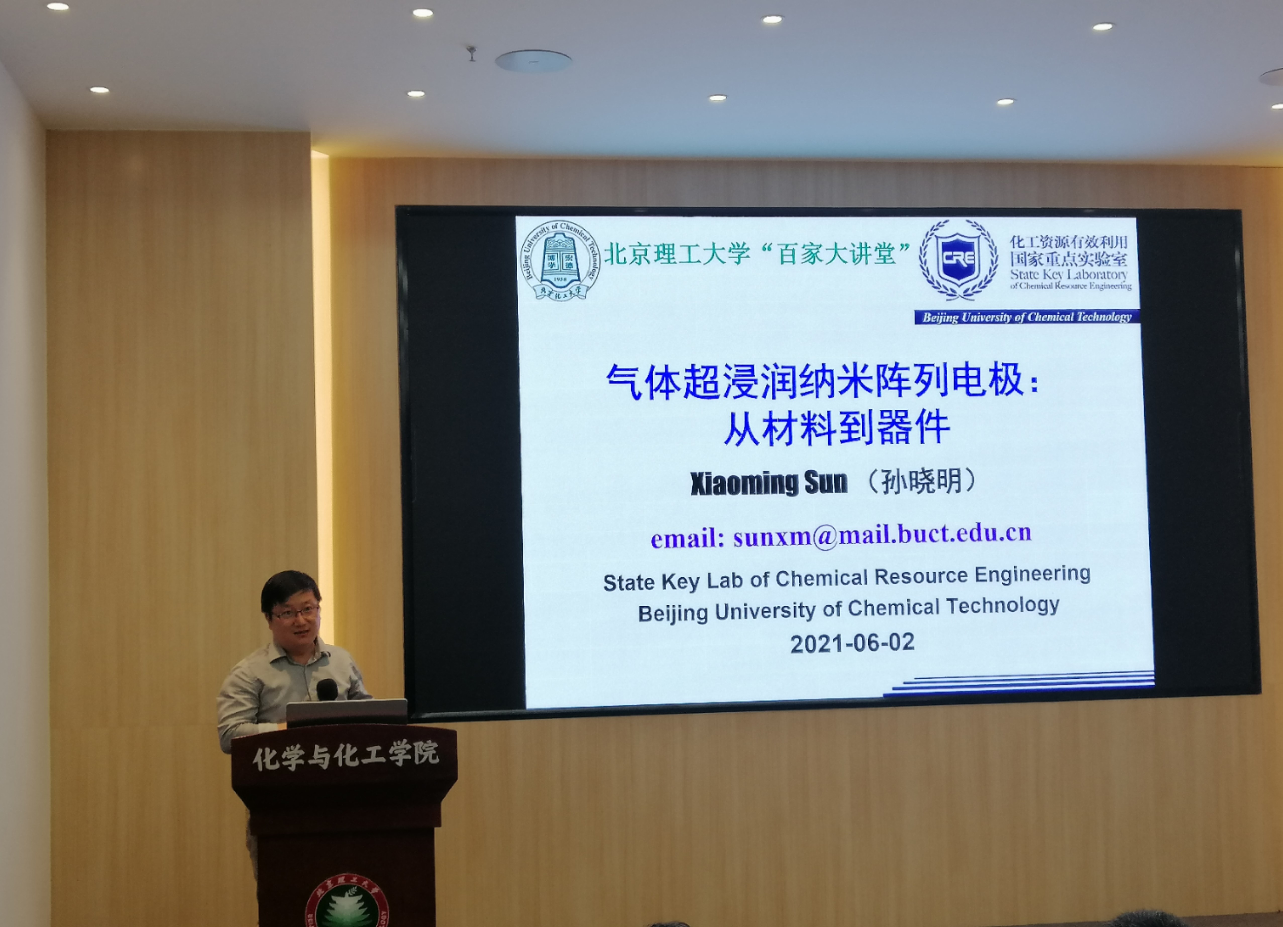 应亚洲无码 邀请,北京化工大学孙晓明教授于2021年6月2日下午14:30在良乡校区工业生态楼118报告厅,作了题为“气体超浸润纳米阵列电极”的精彩学术报告。报告由杨国昱老师主持,近百名化院师生参加了报告。