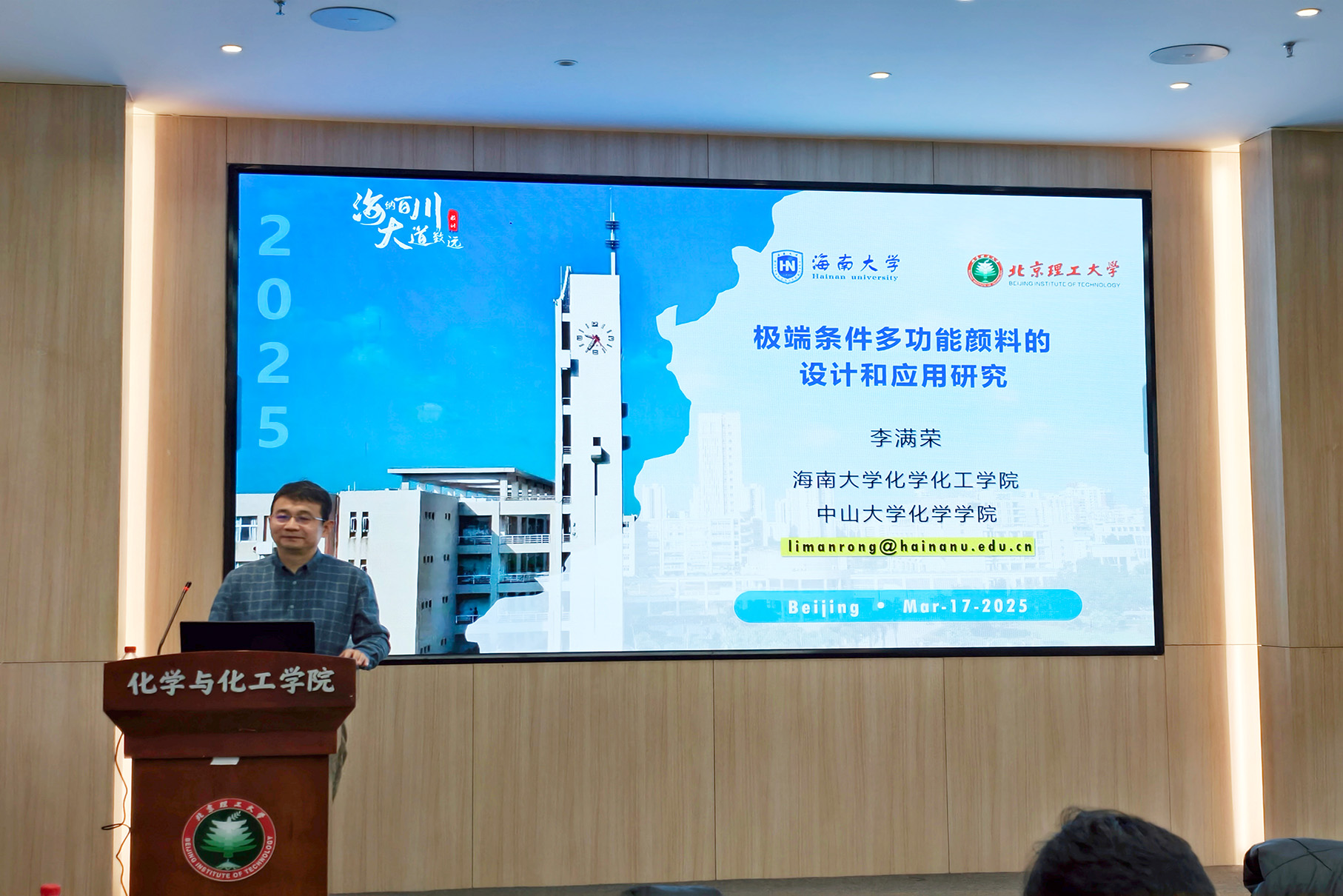 应亚洲无码 邀请,海南大学李满荣教授于2025年3月17日10:00做客亚洲无码 “21世纪学科前沿”系列论坛,为亚洲无码 广大师生带来题为“极端条件多功能颜料的设计和应用研究”的精彩学术报告。本次报告在生态楼118报告厅进行,由杨国昱老师主持,近四十名化院师生参加了报告。